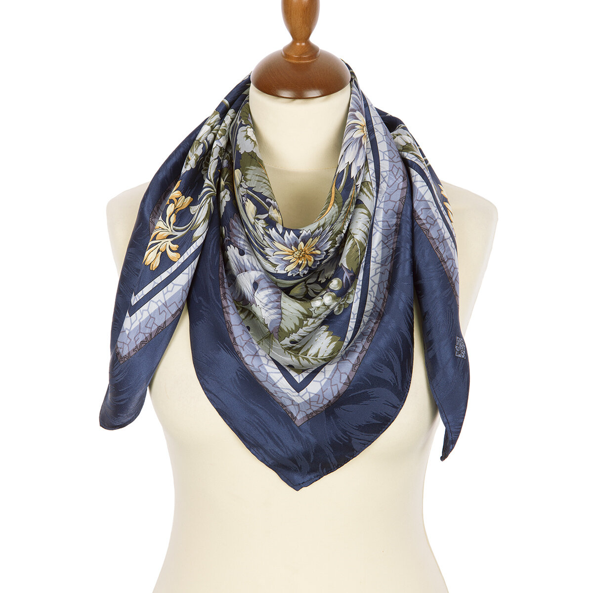 Купить Платок на голову женский шелковый Павловопосадские платки 716 Полнолуние вид 14, синий 89 х 89 см
