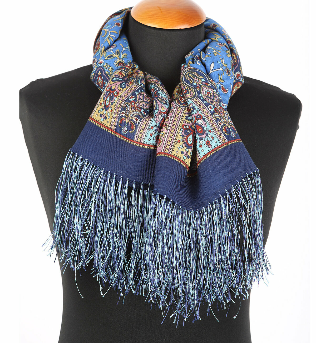 Шарф, Палантин женский шерстяной Павловопосадские платки 1473 Медея 64, синий, 60 х 150 см интересное: