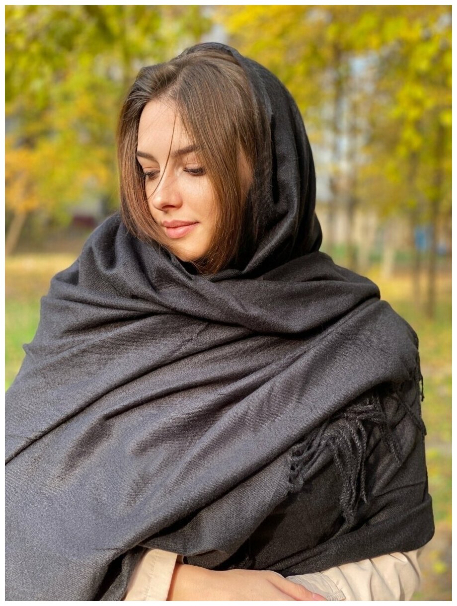 Зимний шарф женский, палантин женский тёплый 200*70 см, платок для храма Черный