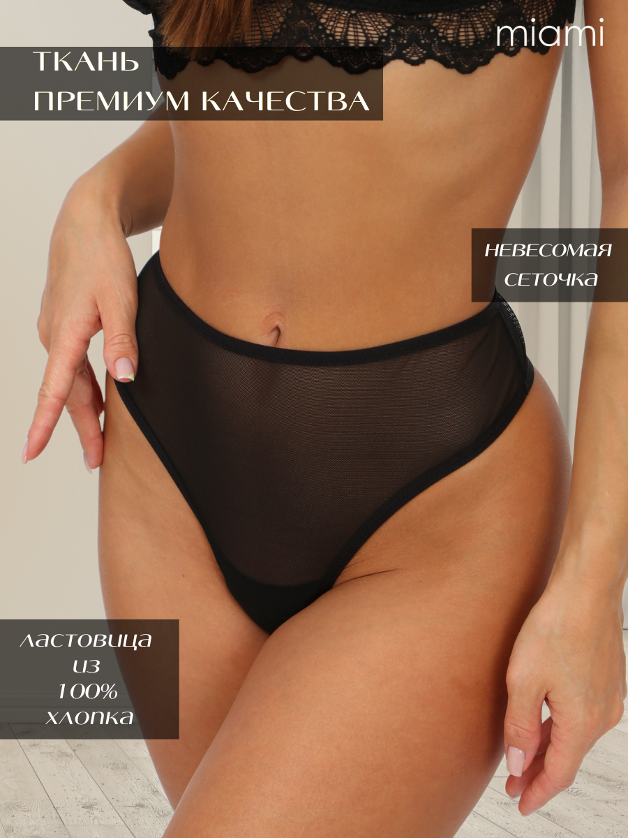 СохранитьТрусы женские стринги, размер 58, высокая посадка, Miami, сетка, черные интересное: