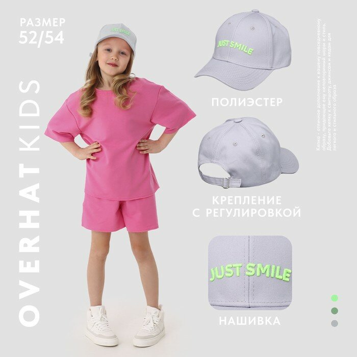 Купить Кепка детская для мальчика Just smile, цвет серый, р-р 52-54, 5-7 лет