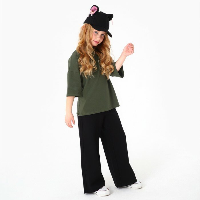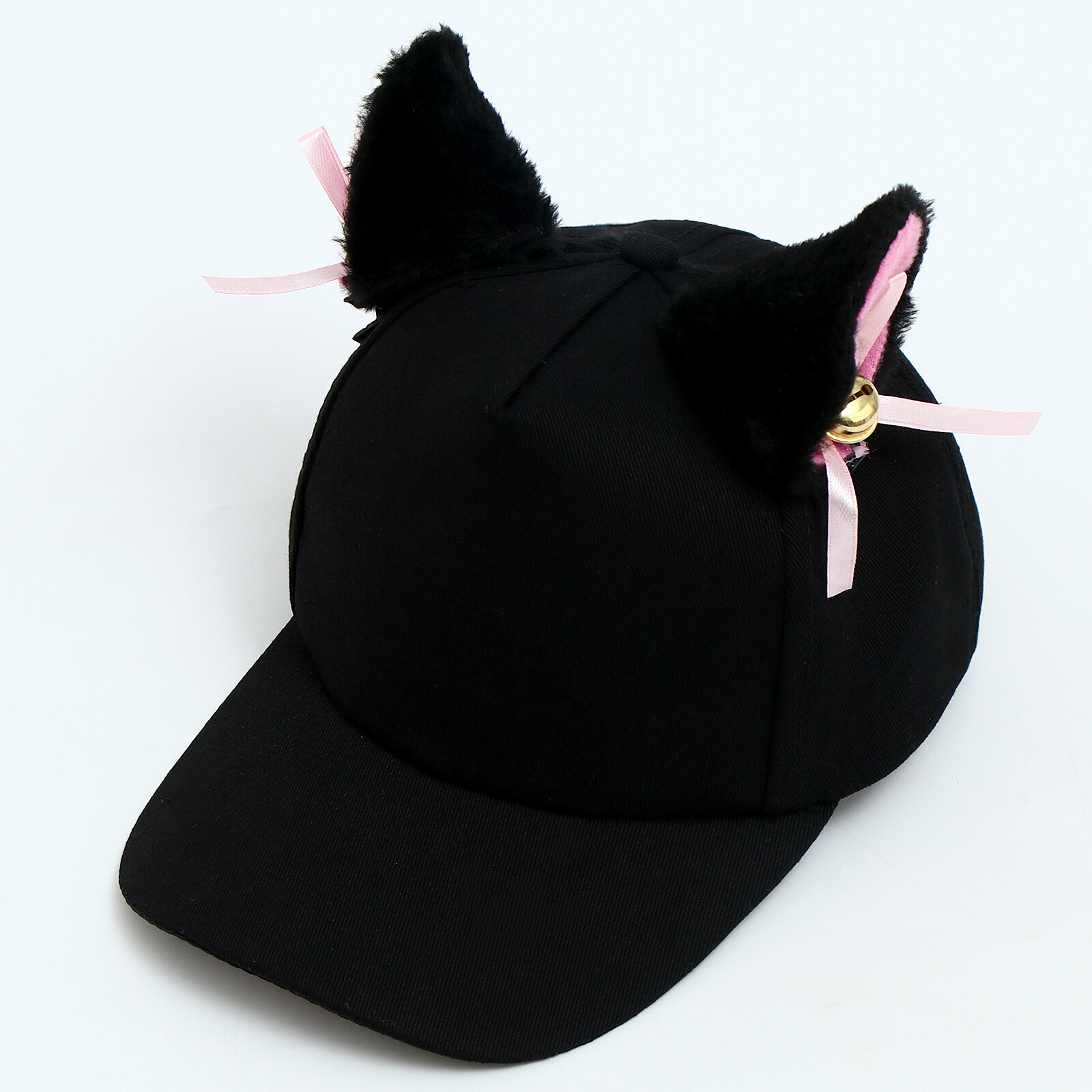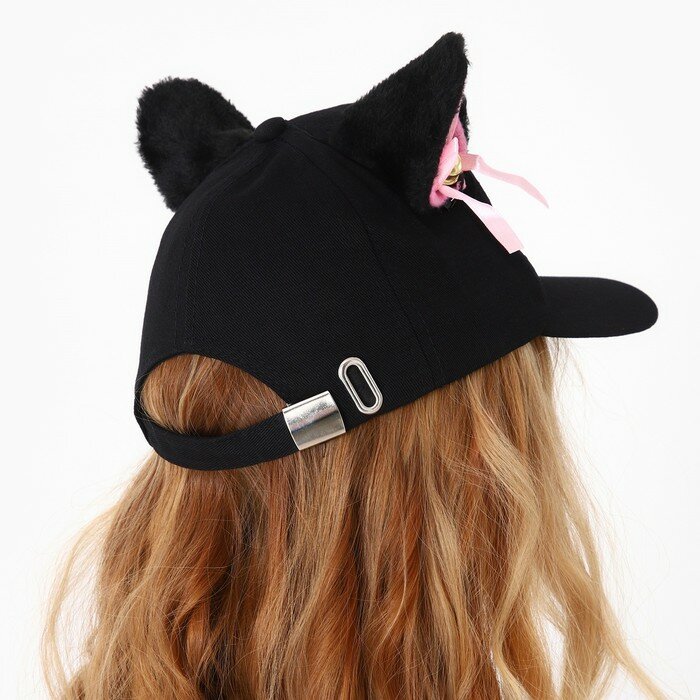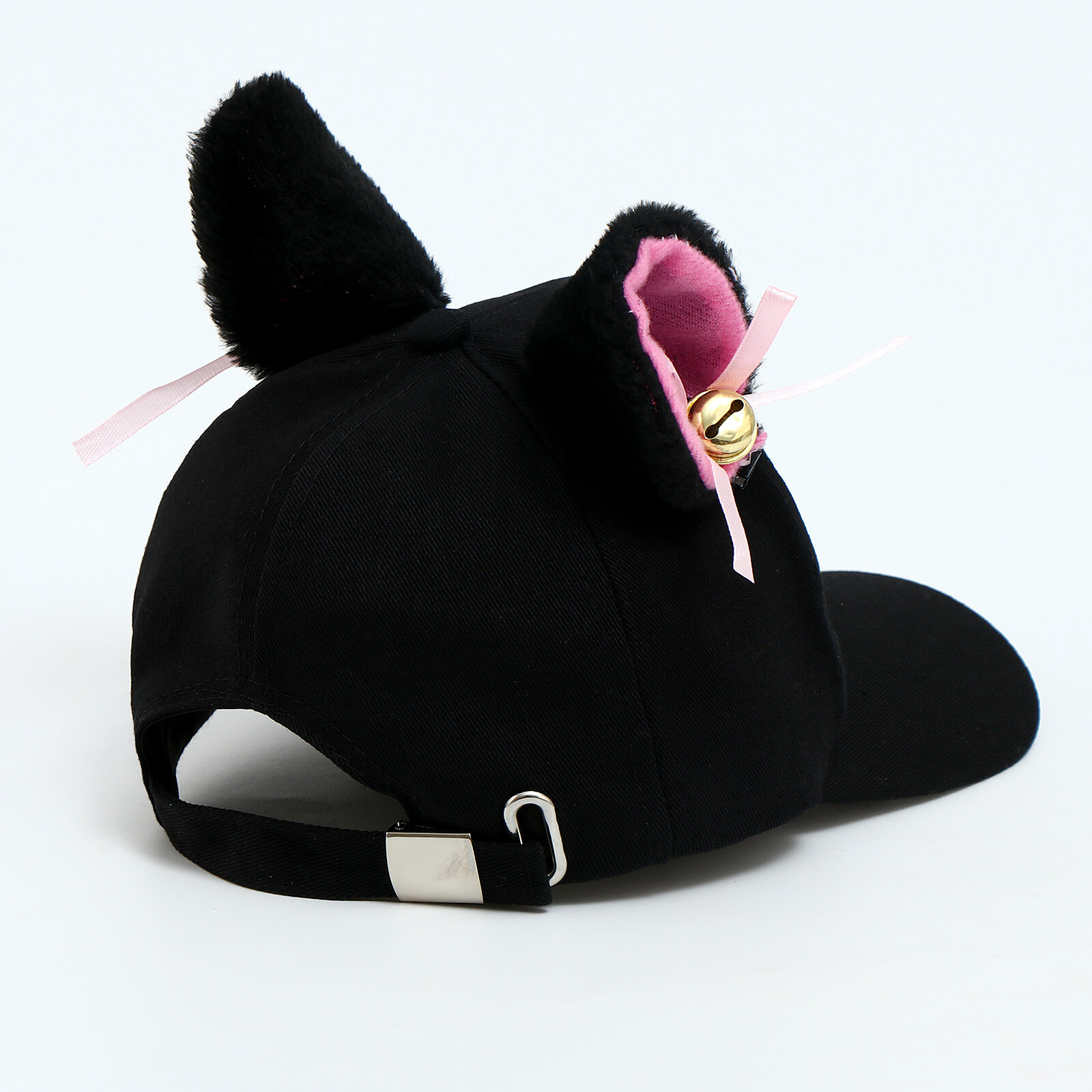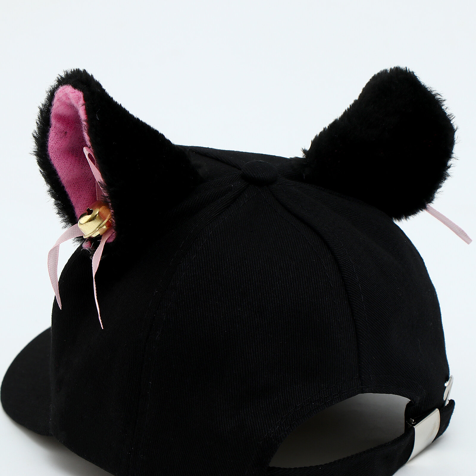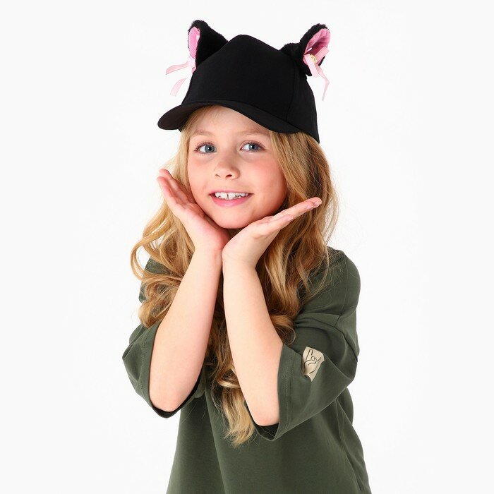 Купить Кепка детская для девочки "Кошечка" с ушками, цвет черный, р-р 52-54, 5-7 лет