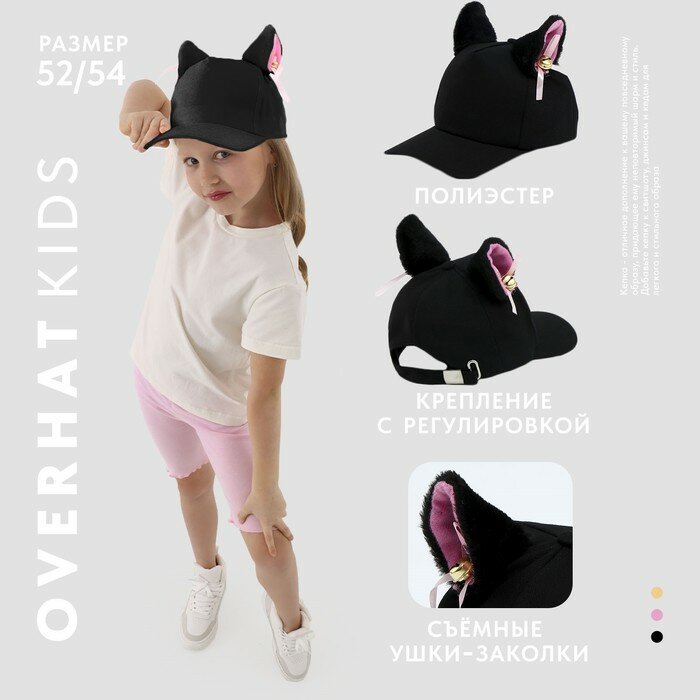 Overhat kids Кепка детская для девочки "Мурр"аниме, с ушками, р-р 52-54, 5-7 лет