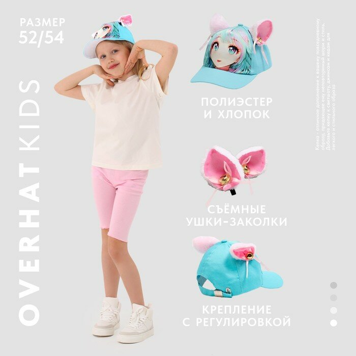 Overhat kids Кепка детская для девочки "Мурр"аниме, с ушками, р-р 52-54, 5-7 лет