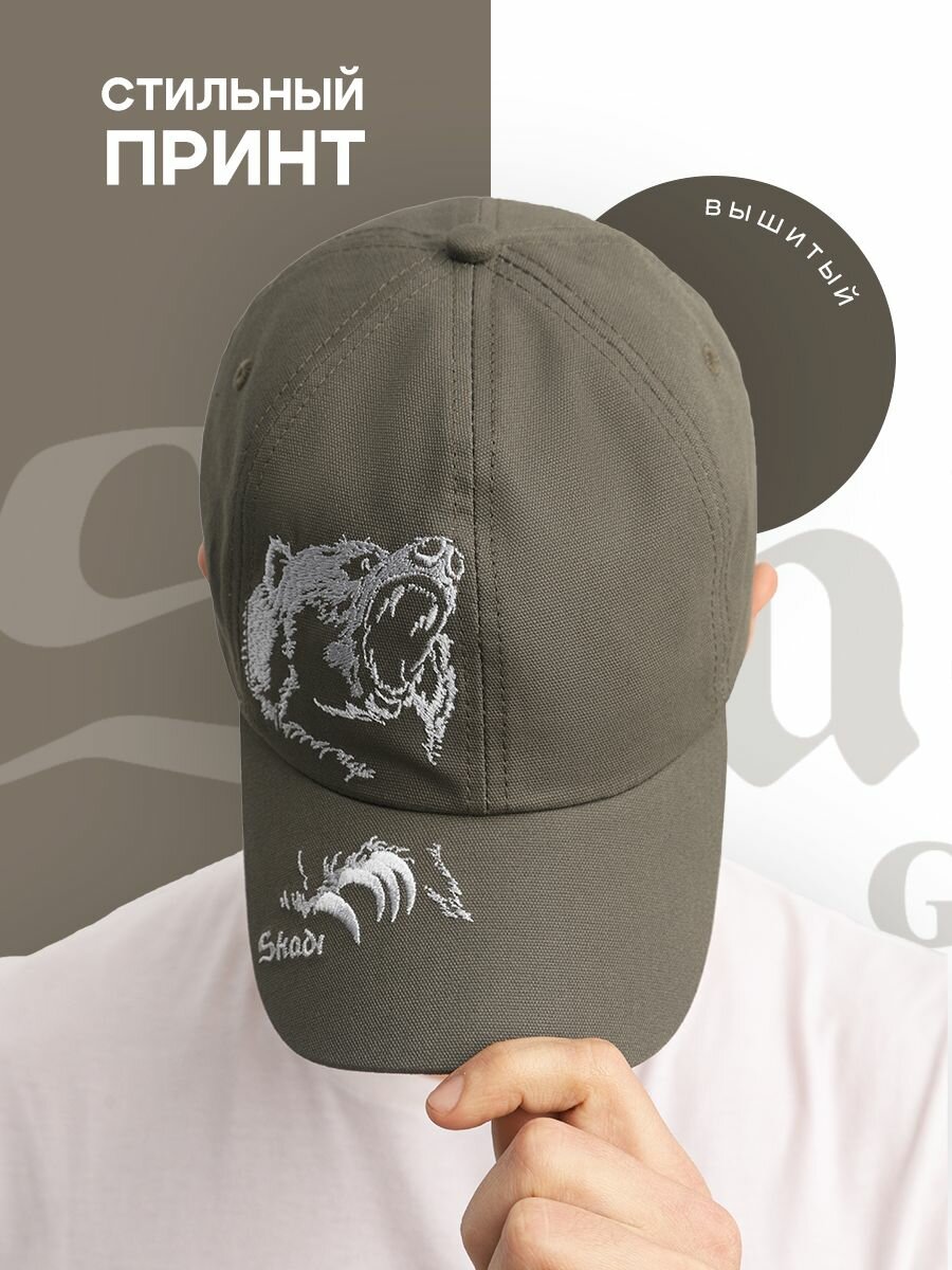 Мужская бейсболка Skadi Gear, цвет: зеленый, размер универсальный, принт медведь