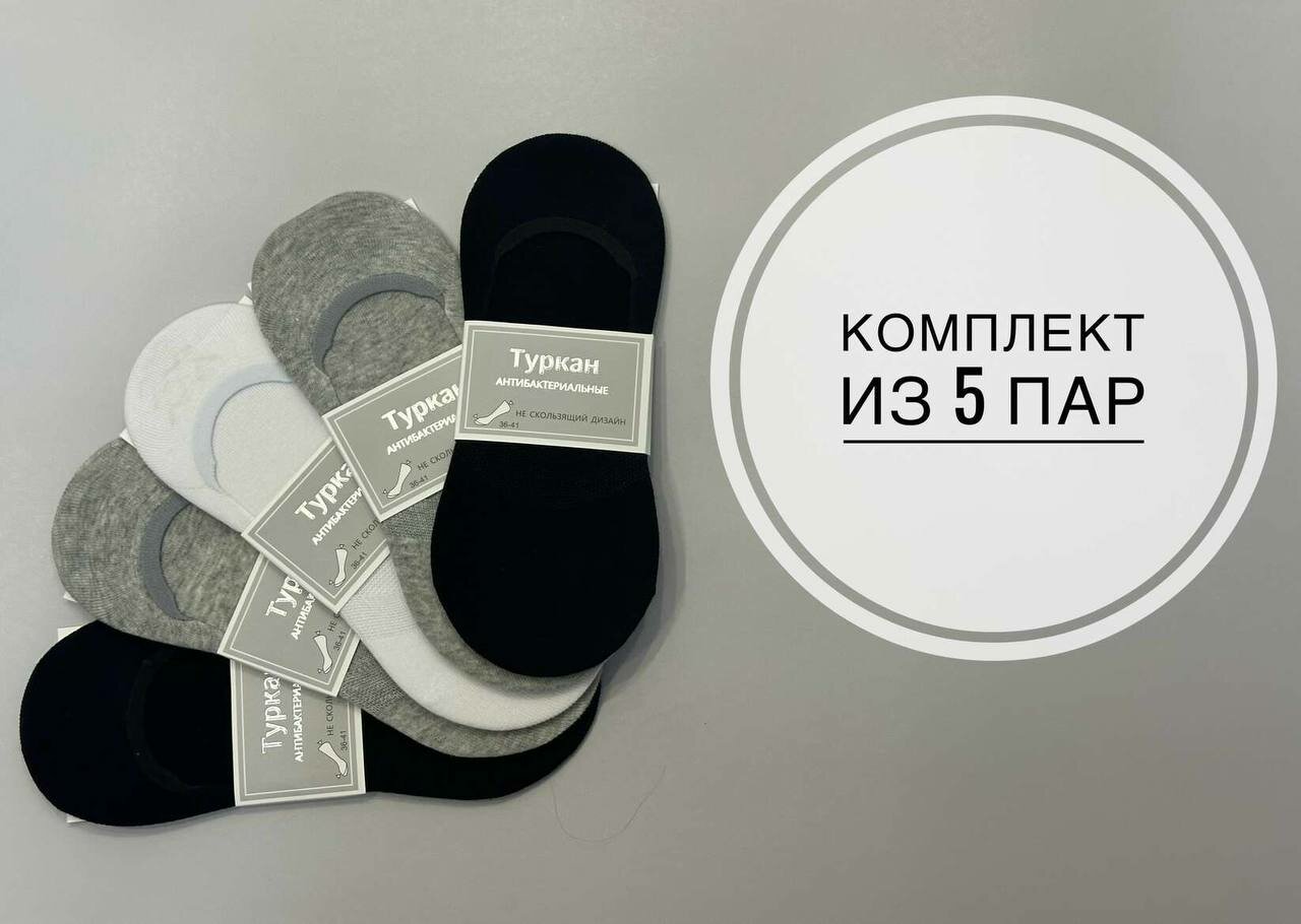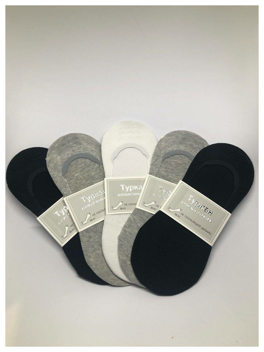 Подследники Turkan, 5 пар, размер 36-41, белый, черный, серый