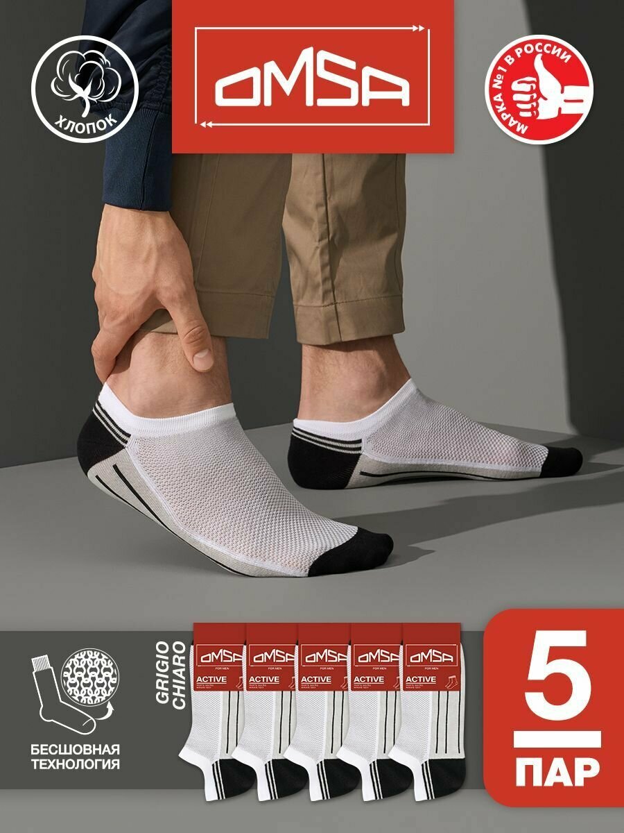 СохранитьНоски мужские, OMSA ACTIVE 109, короткие, с рисунком, с принтом, из хлопка, Grigio Сhiaro 45-47, набор – 5 пар интересное: