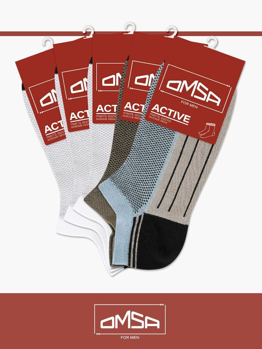 Носки мужские, OMSA ACTIVE 109, короткие, с рисунком, с принтом, из хлопка, Grigio Сhiaro 39-41, набор – 5 пар