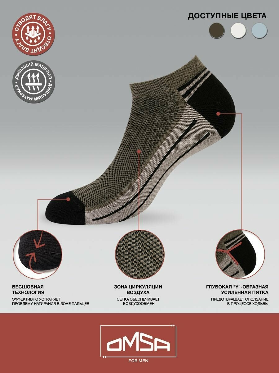 Носки мужские, OMSA ACTIVE 109, короткие, с рисунком, с принтом, из хлопка, Grigio Сhiaro 39-41, набор – 5 пар