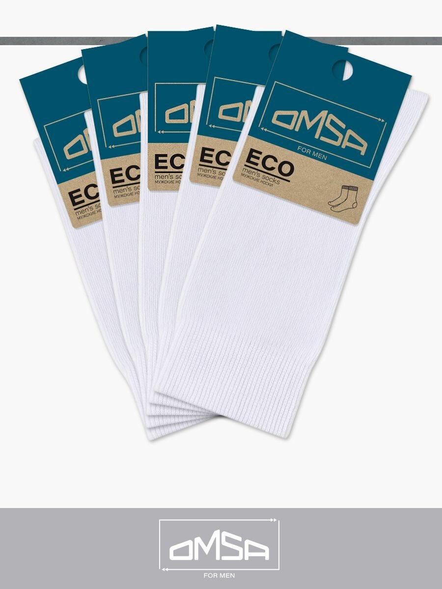 Носки мужские OMSA ECO 401, высокие, комплект 5 пар, Цвет Bianco, Размер 42-44 (27-29)