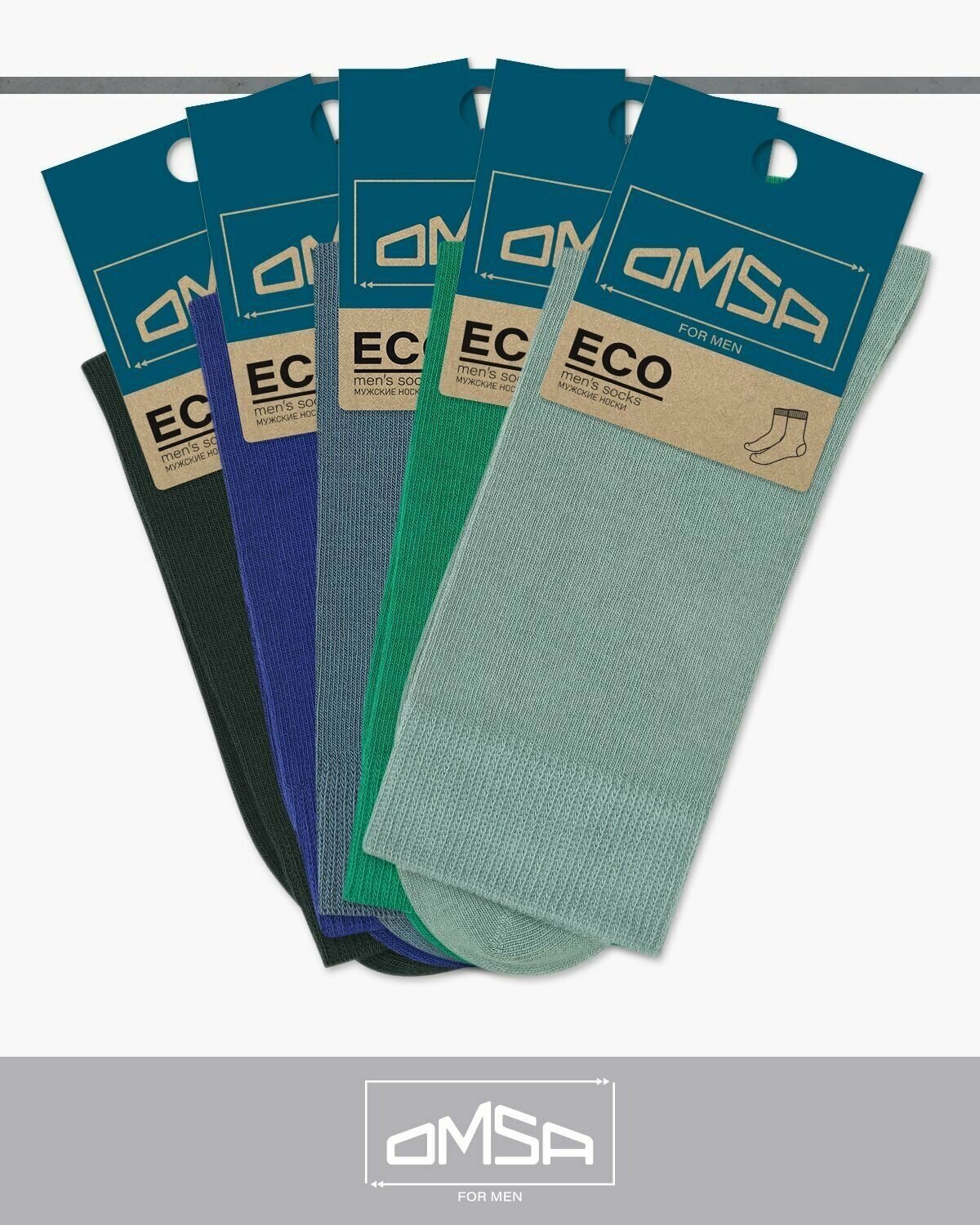 Носки мужские OMSA ECO 401, высокие, набор 5 пар, Цвет Acquamarina/Erba/Jeans/Ultramarino/Verde Foresta, Размер 42-44 (27-29), уп."Крафт"
