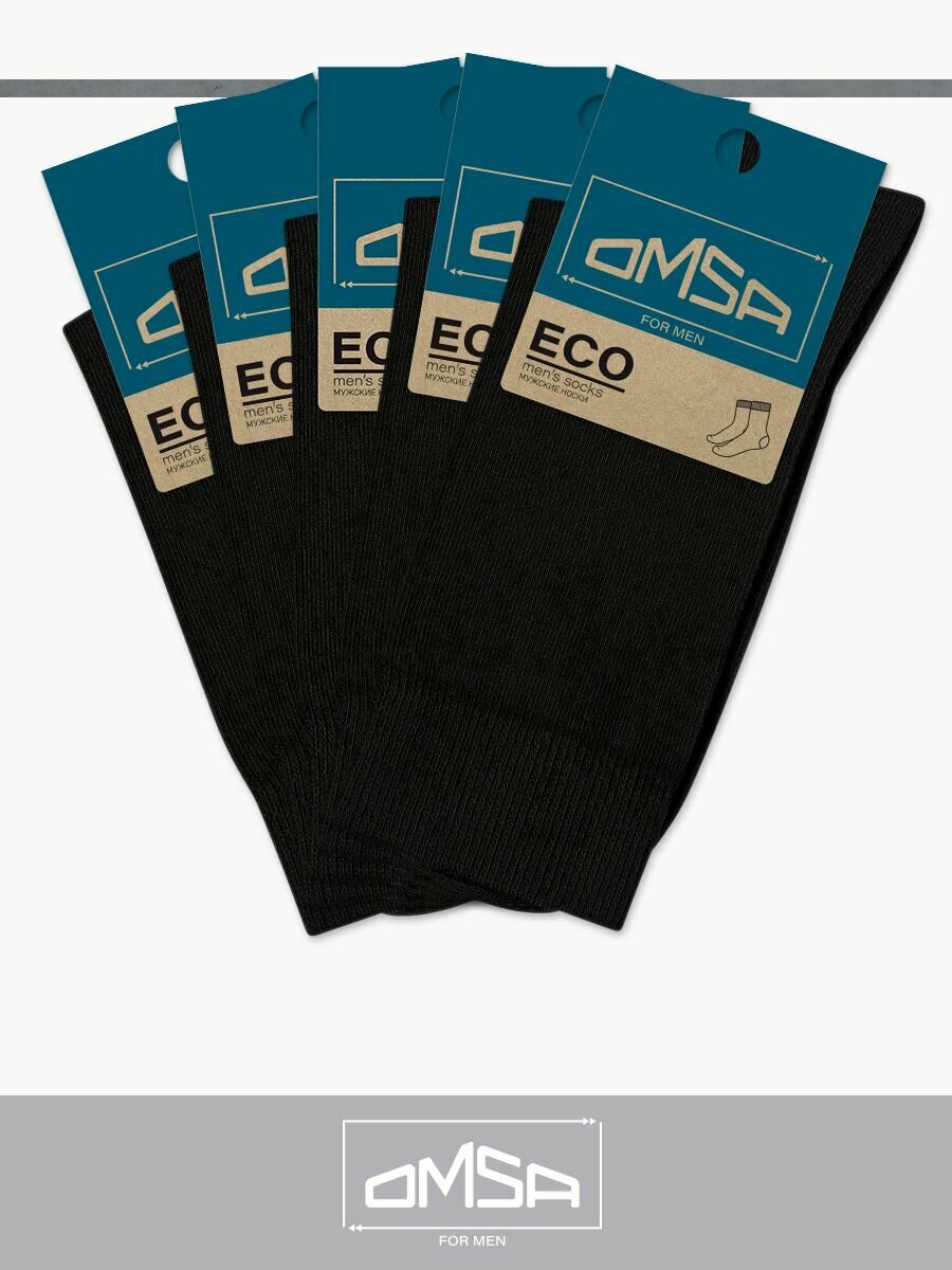 Носки мужские OMSA ECO 401, высокие, комплект 5 пар, Цвет Nero, Размер 39-41 (25-27)