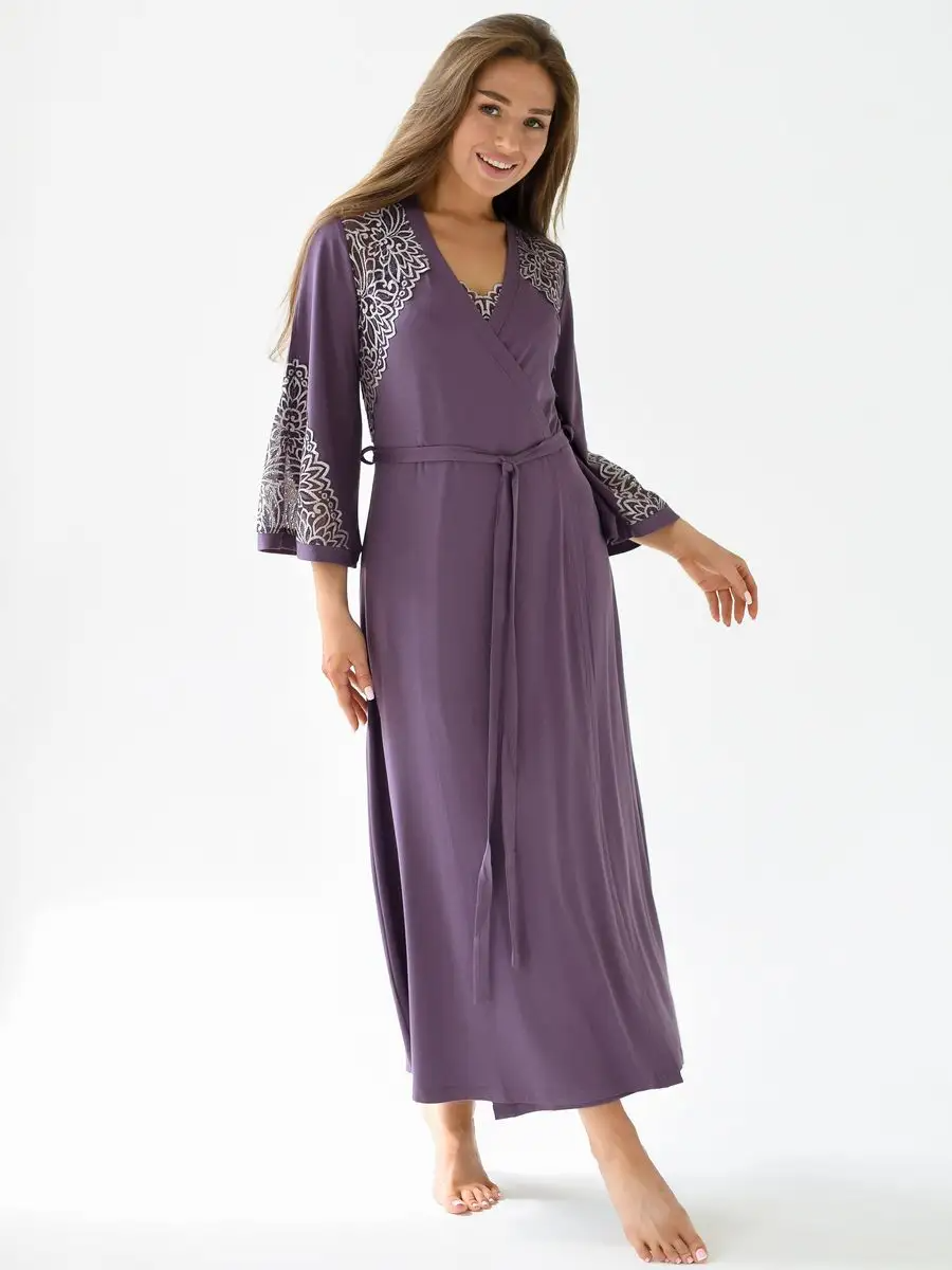 СохранитьПеньюар Маркиза длинный халат и укороченная сорочка с эластичным кружевом на широкой бретели. Премиум -качества. Цвет фиолетовый, размер 44 интересное: