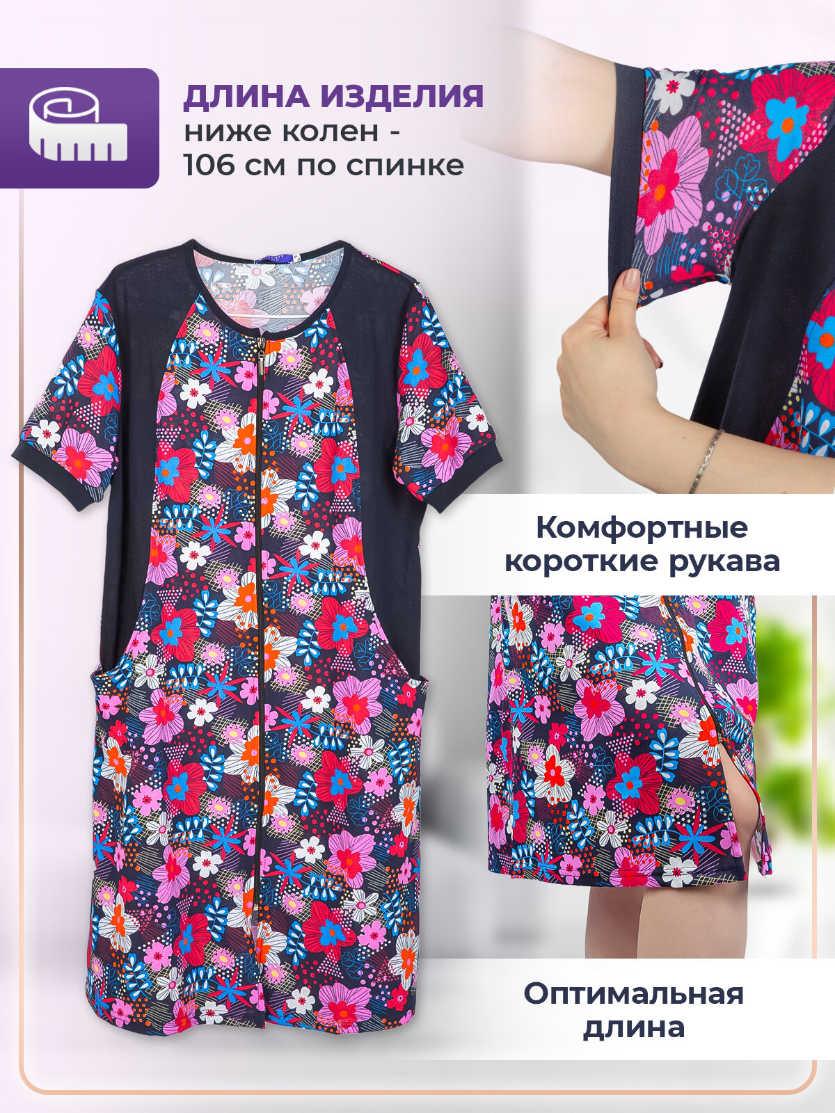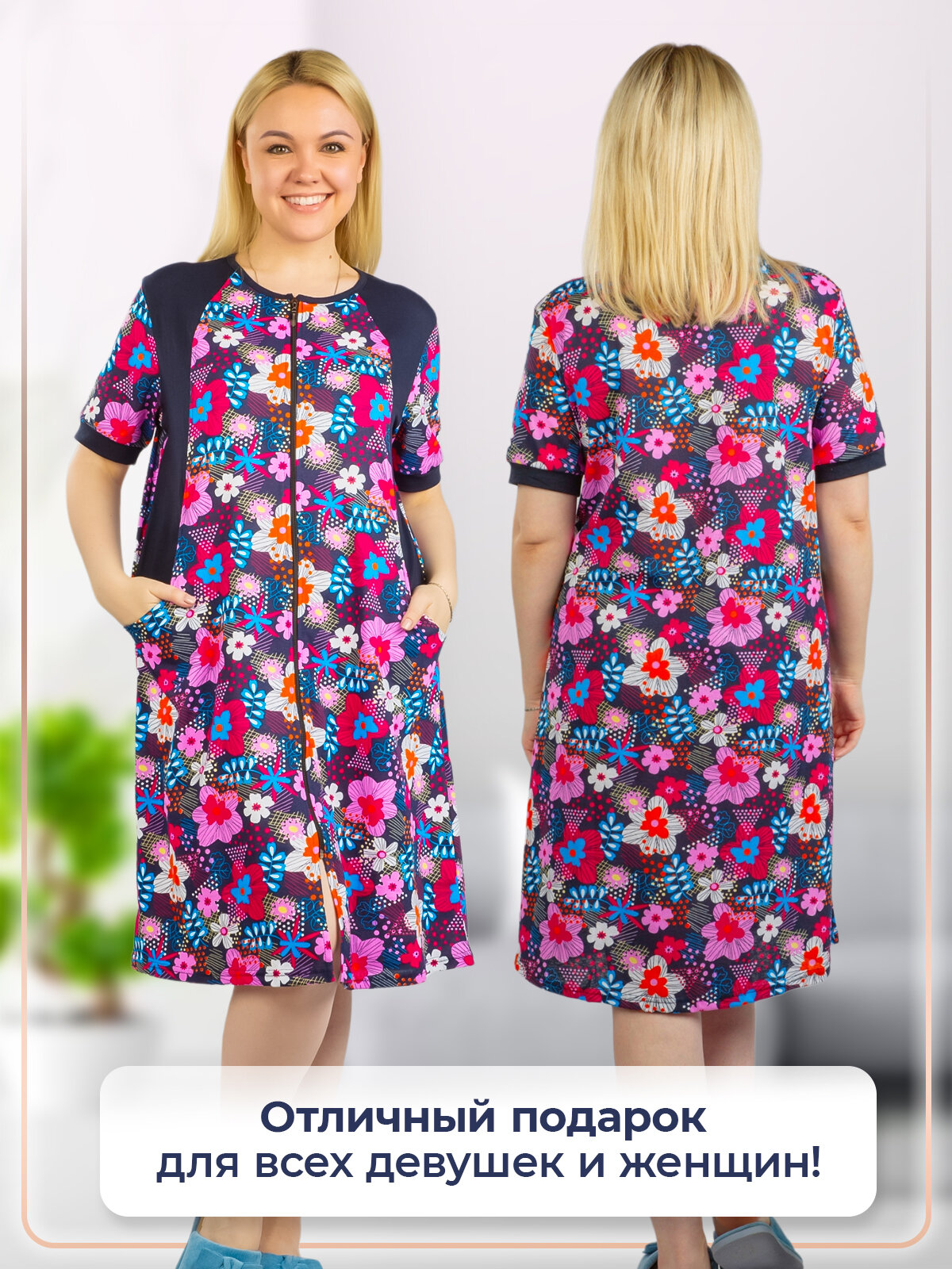 Домашнее платье "Мария" / Халат большого размера для женщин / Халат-платье повседневное, цвет Синие цветы, р. 46-48 интересное: