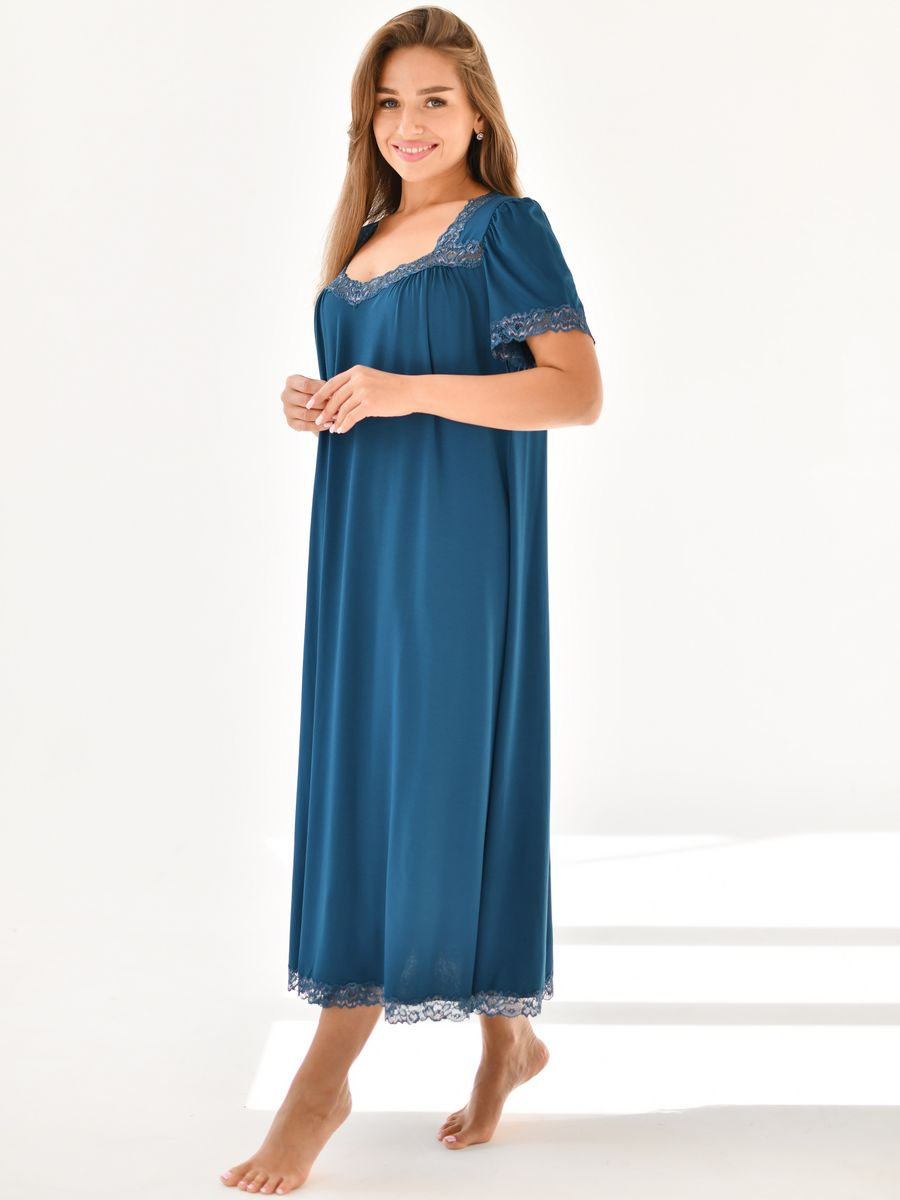 СохранитьЖенская ночная сорочка вискоза, длинная ночная рубашка с рукавом вискозная, размер 52, цвет бирюзовый, с кружевом. Текстильный край. интересное: