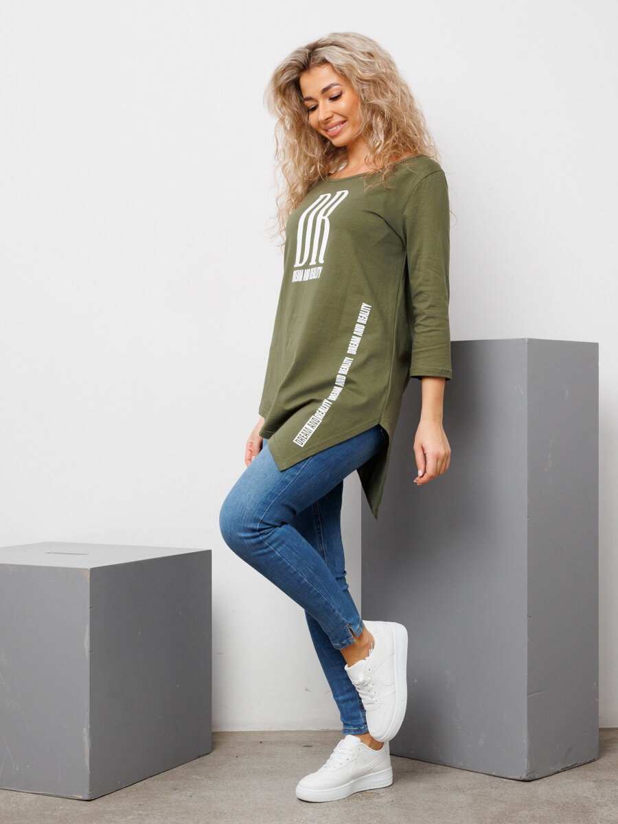 Женская платье-туника, с рукавом, вискоза, с карманами, цвет персиковый, бежевый. Размер 46