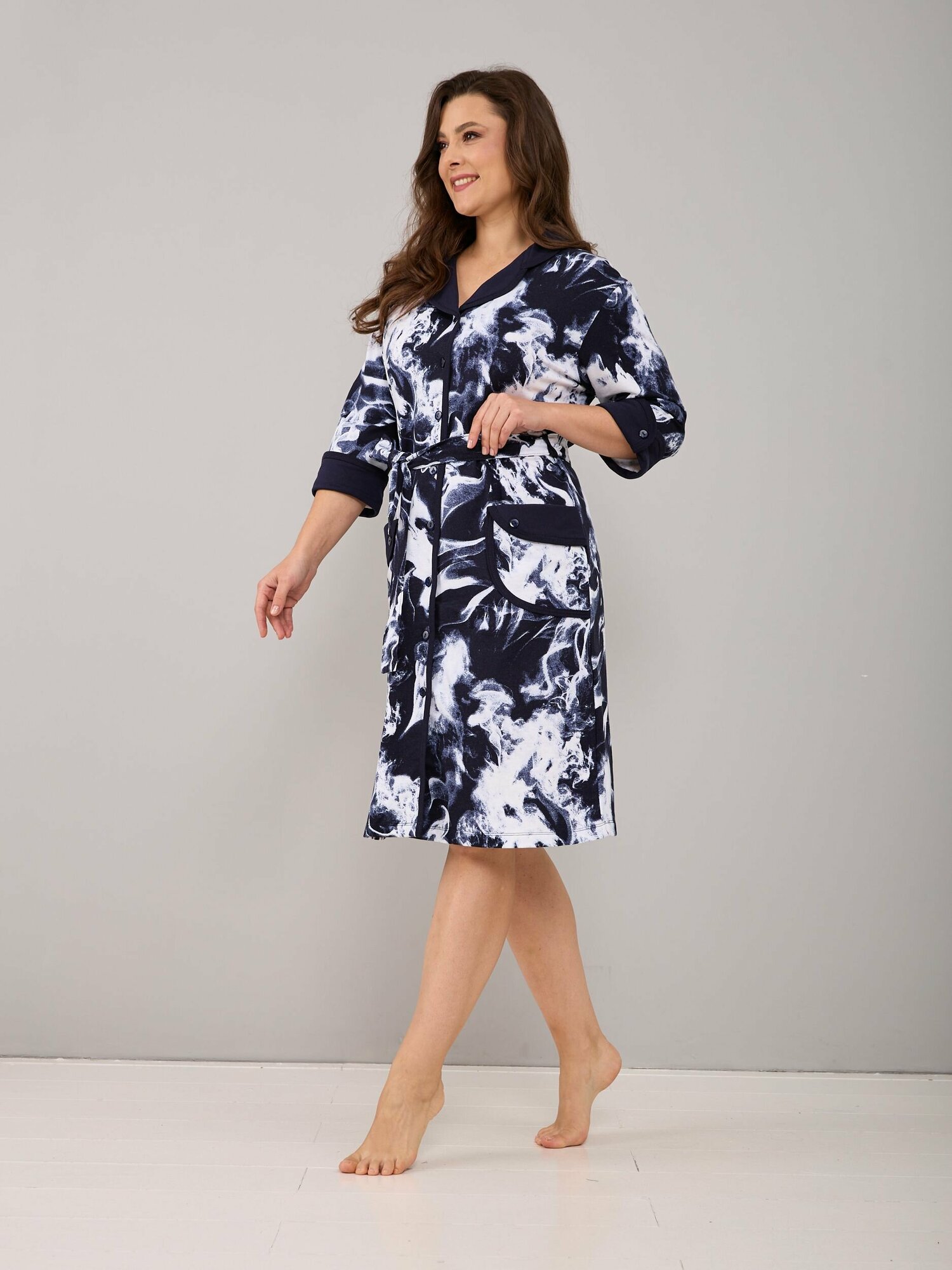 Халат банный женский Алтекс на пуговицах и поясом с индиго-черныйдым, размер 58