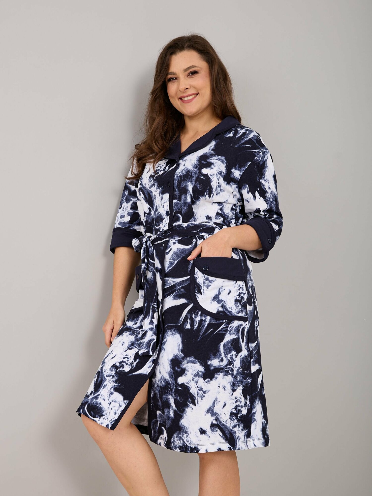 Халат банный женский Алтекс на пуговицах и поясом с индиго-черныйдым, размер 52