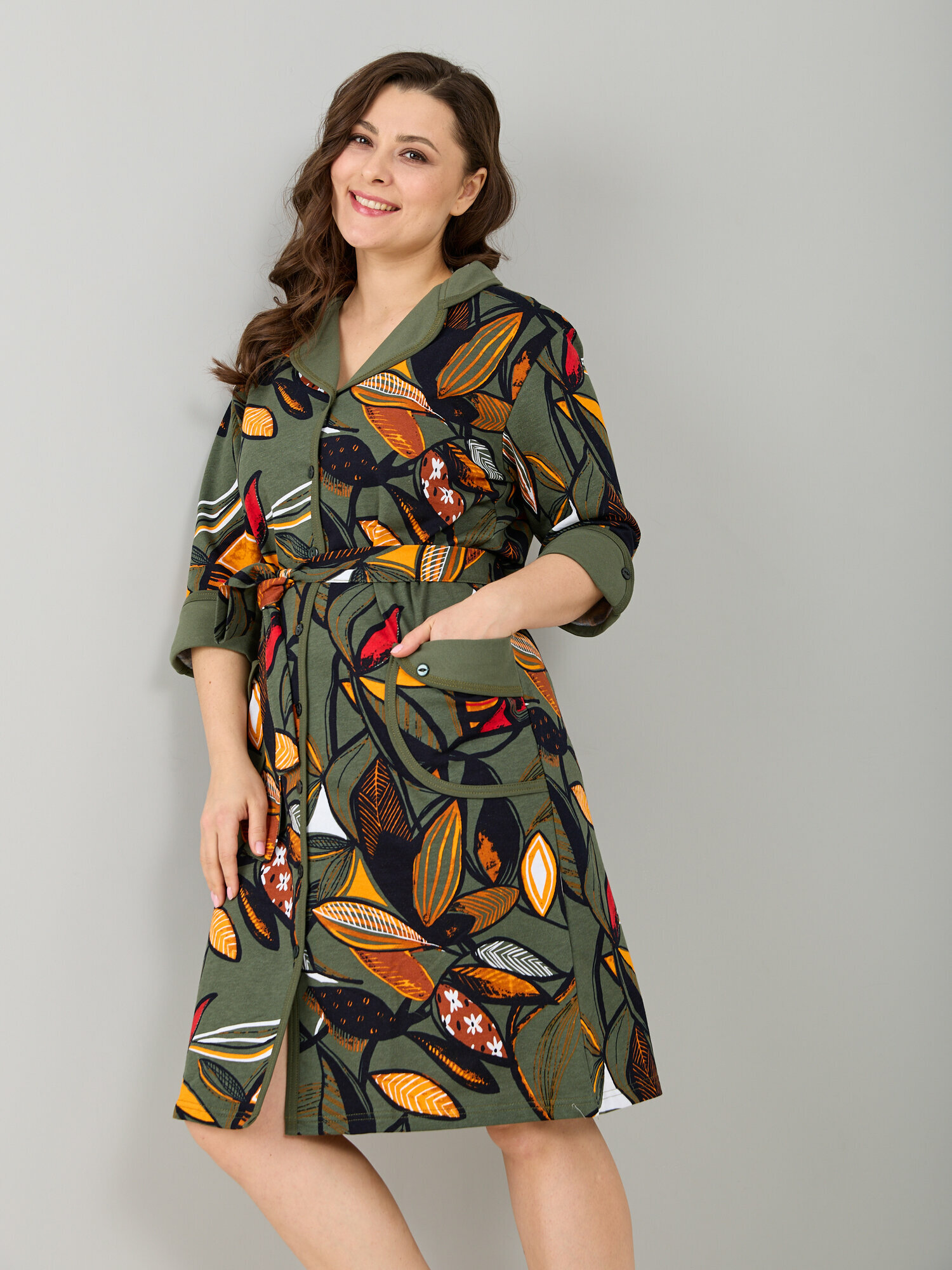 СохранитьХалат банный женский Алтекс на пуговицах и поясом с начесом хаки, размер 60 интересное: