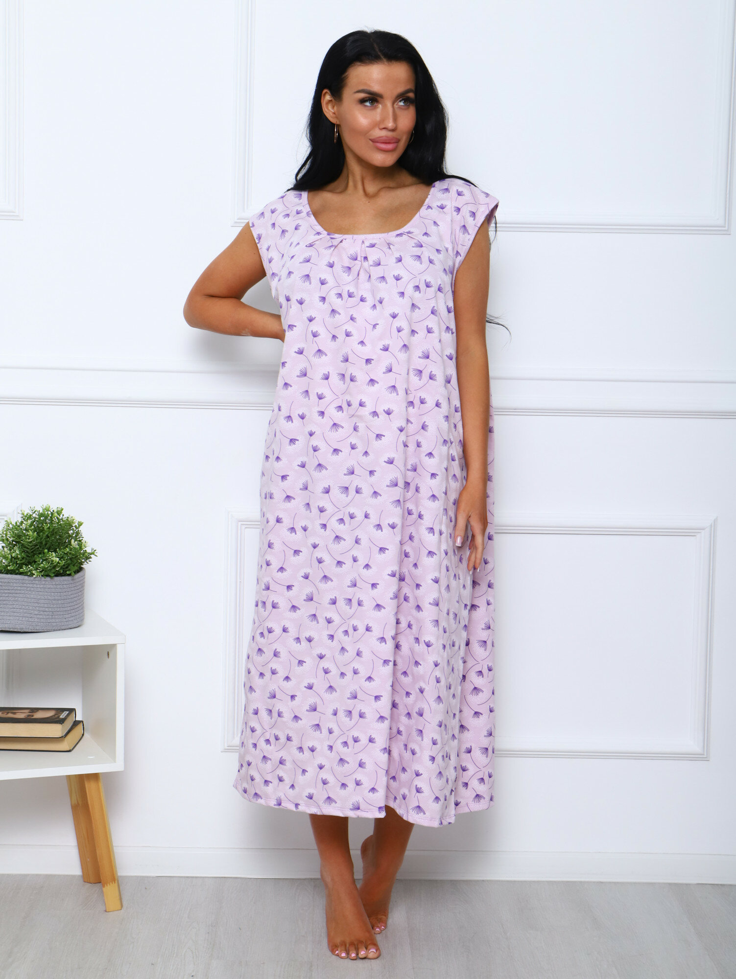 Купить Сорочка Дарья сирень 70 / Ночная сорочка больших размеров / Одежда для сна / Ночная сорочка трикотаж / Домашний трикотаж большого размера