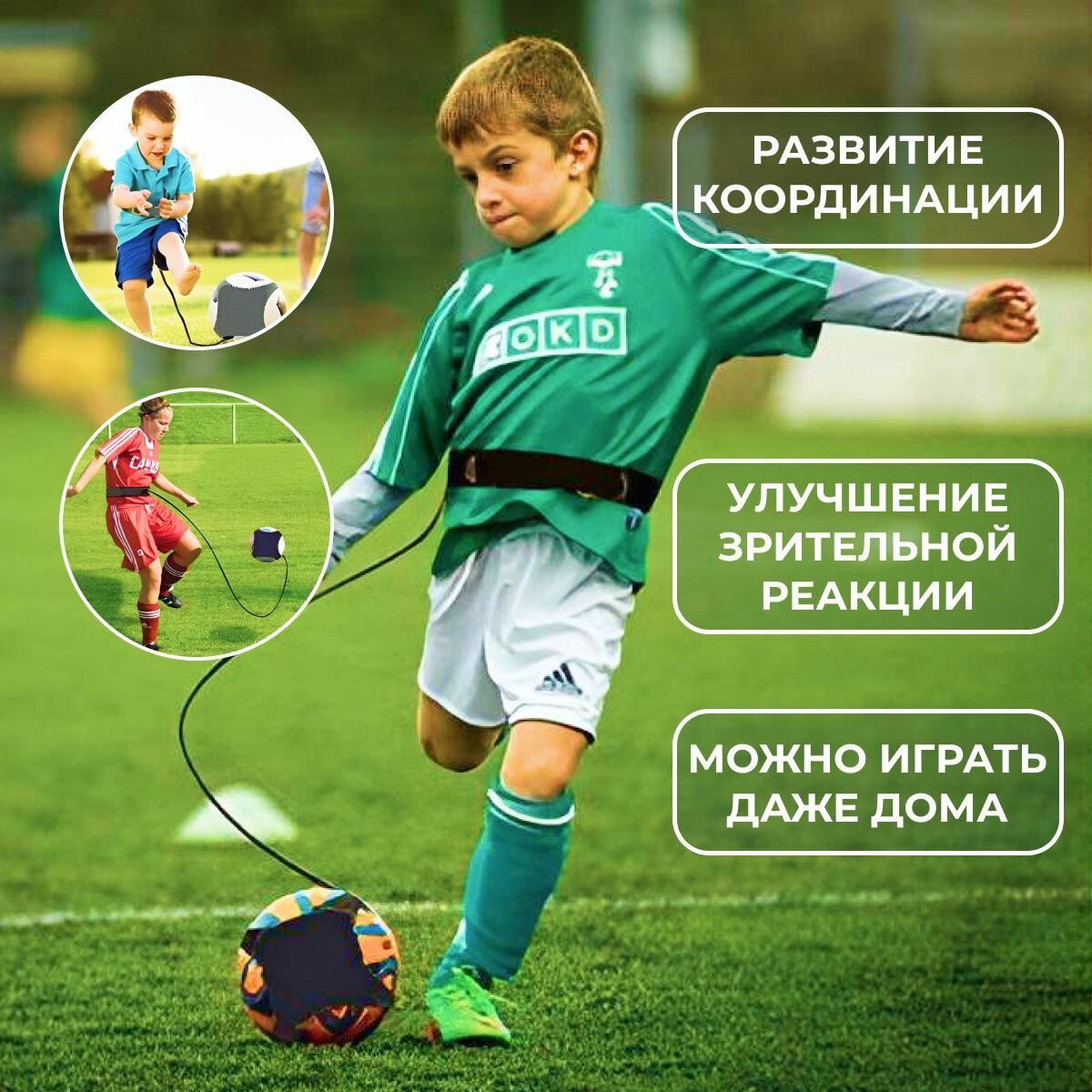 Футбольный тренажер, футбольный мяч на резинке, тренажер для отработки пасов , ударов