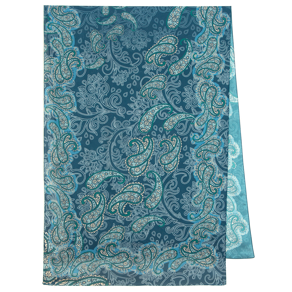 Палантин Павловопосадская платочная мануфактура для женщин,200х65 см, зеленый/голубой
