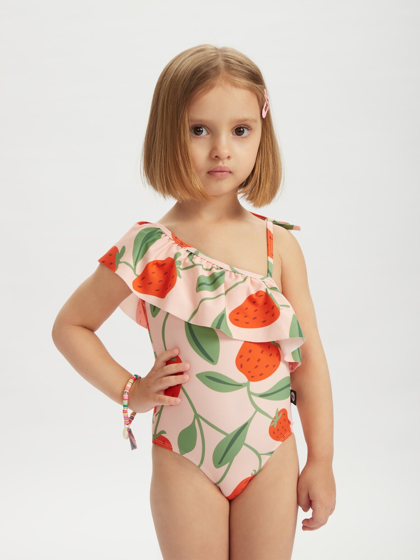 50665, Детский купальник слитный для девочек Happy Baby с защитой от солнца, розовый с ягодками, размер 92-98 интересное: