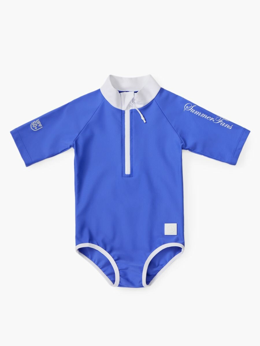 50657, Купальник слитный детский для девочек, защита от солнца UPF 50+ Happy Baby с длинным рукавом, на молнии, солнцезащита, голубой, 80-86