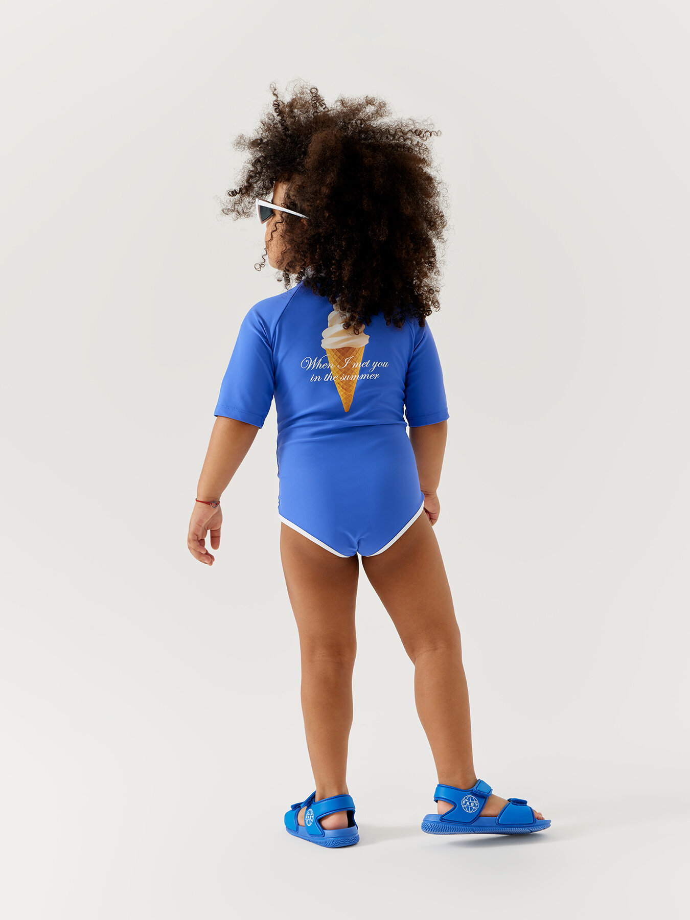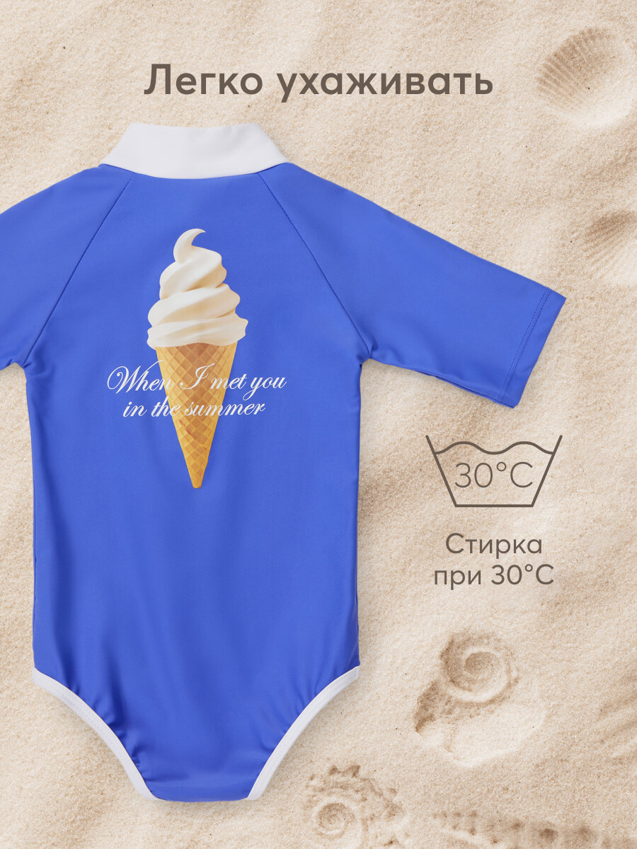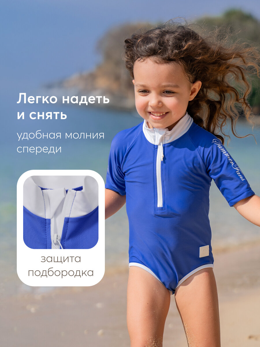 Сохранить50657, Купальник слитный детский для девочек, защита от солнца UPF 50+ Happy Baby с длинным рукавом, на молнии, солнцезащита, голубой, 92-98 интересное: