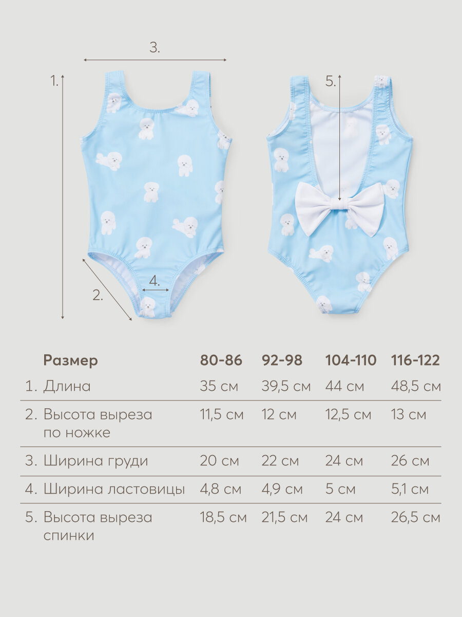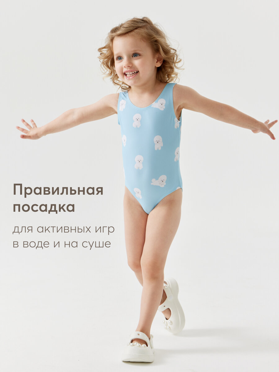 50658, Купальник детский для девочки Happy Baby, слитный с открытой спиной, для пляжа и для бассейна голубой, размер 80-86