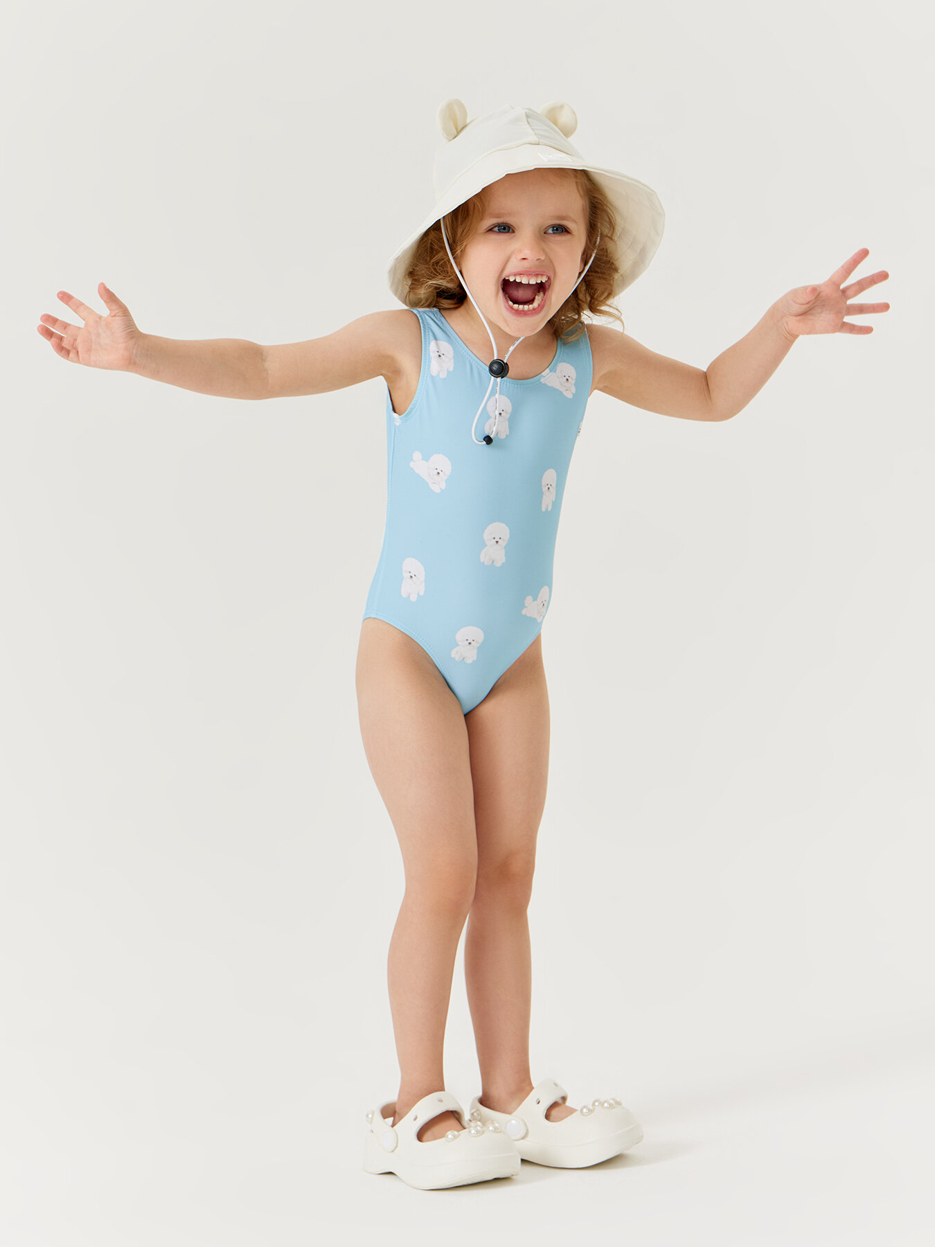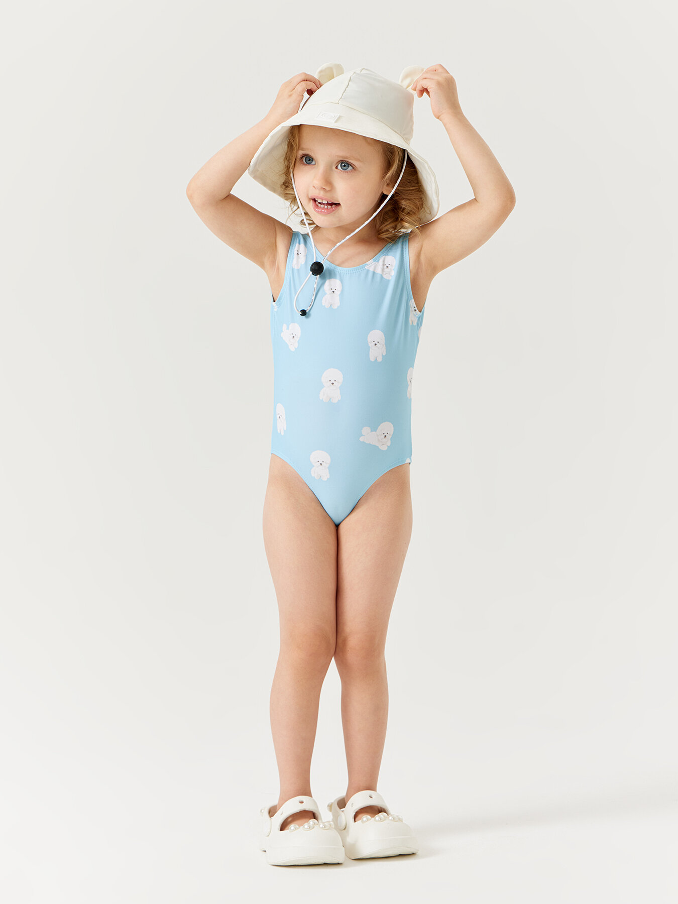 50658, Купальник детский для девочки Happy Baby, слитный с открытой спиной, для пляжа и для бассейна белый, размер 80-86