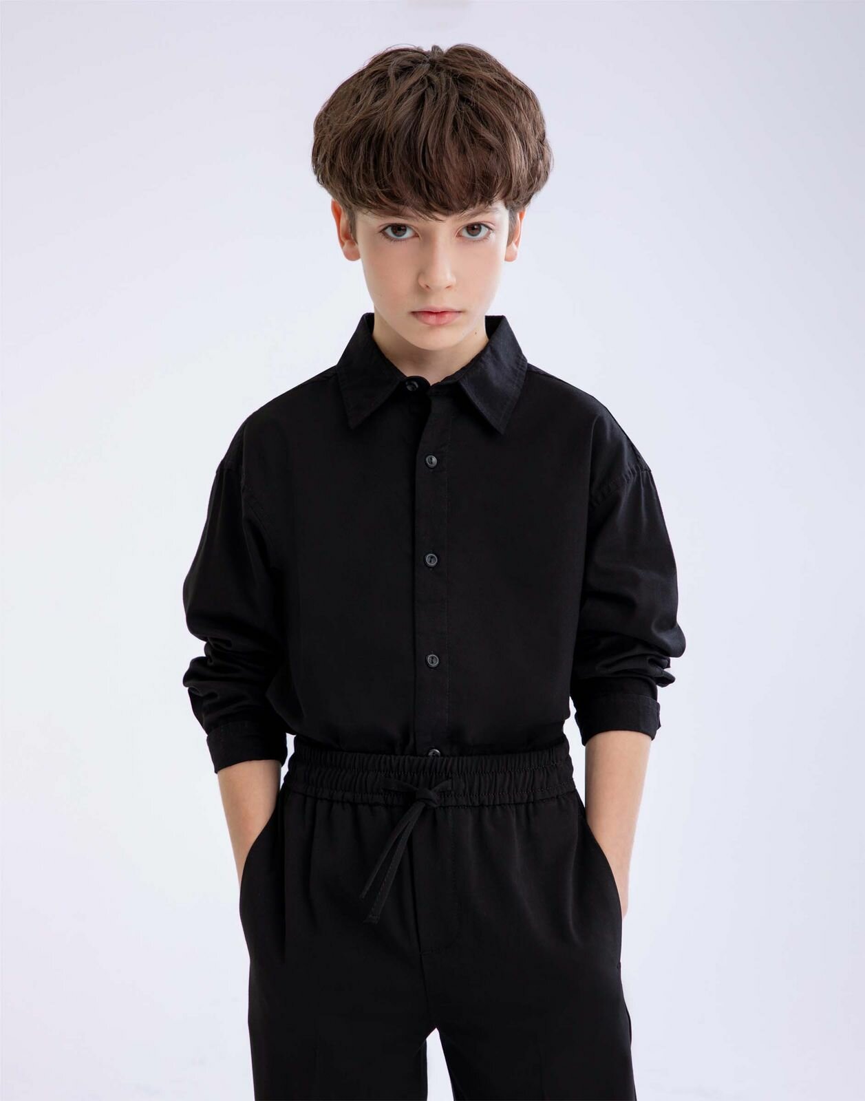 Купить Сорочка BSU000389 тканая черный 15-16л/176