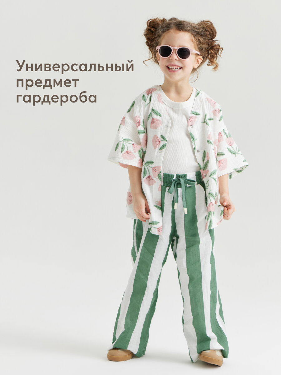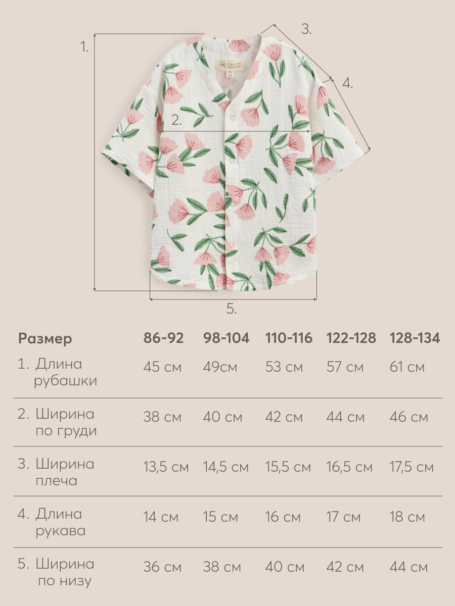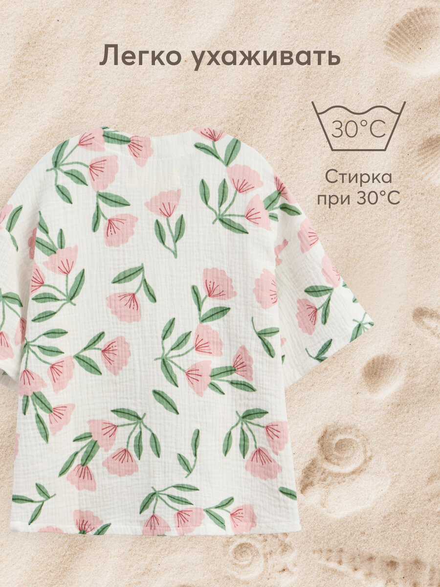 Сохранить88130, Рубашка детская хлопковая Happy Baby, рубашка для мальчика и для девочки летняя, детская одежда на лето, белая с цветами, размер 122-128 интересное:
