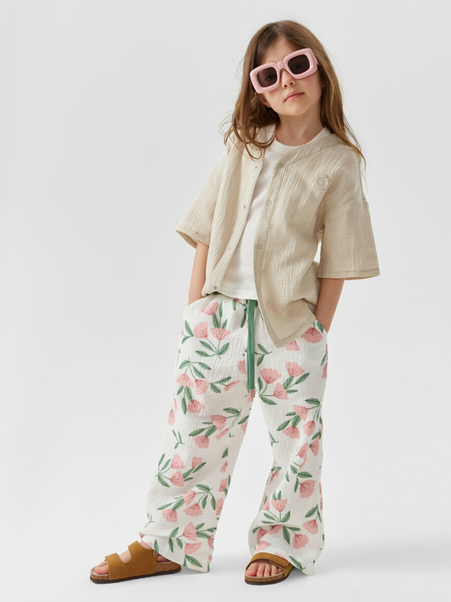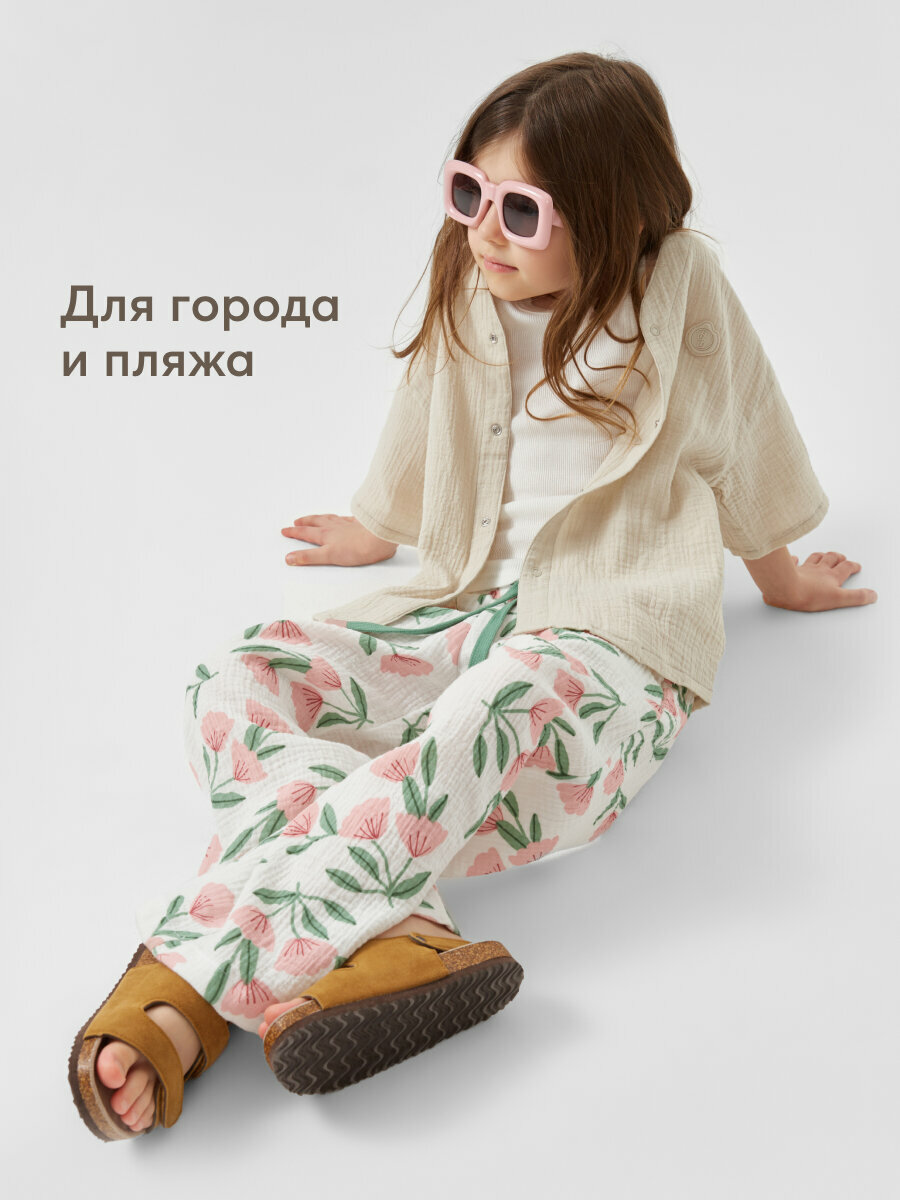 88130, Рубашка детская хлопковая Happy Baby, рубашка для мальчика и для девочки летняя, детская одежда на лето, белая с цветами, размер 122-128