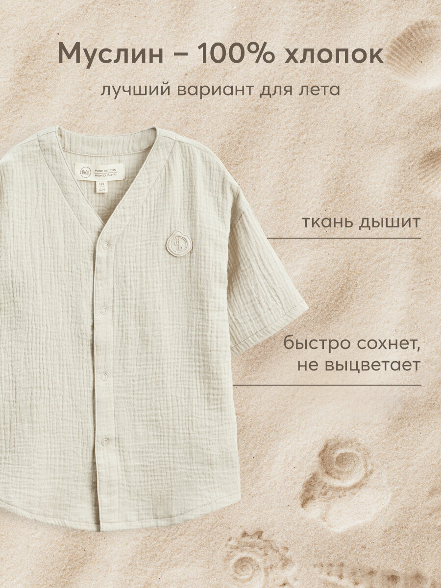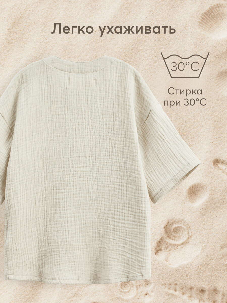 Сохранить88130, Рубашка детская хлопковая Happy Baby, рубашка для мальчика и для девочки летняя, детская одежда на лето, бежевая, размер 128-134 интересное: