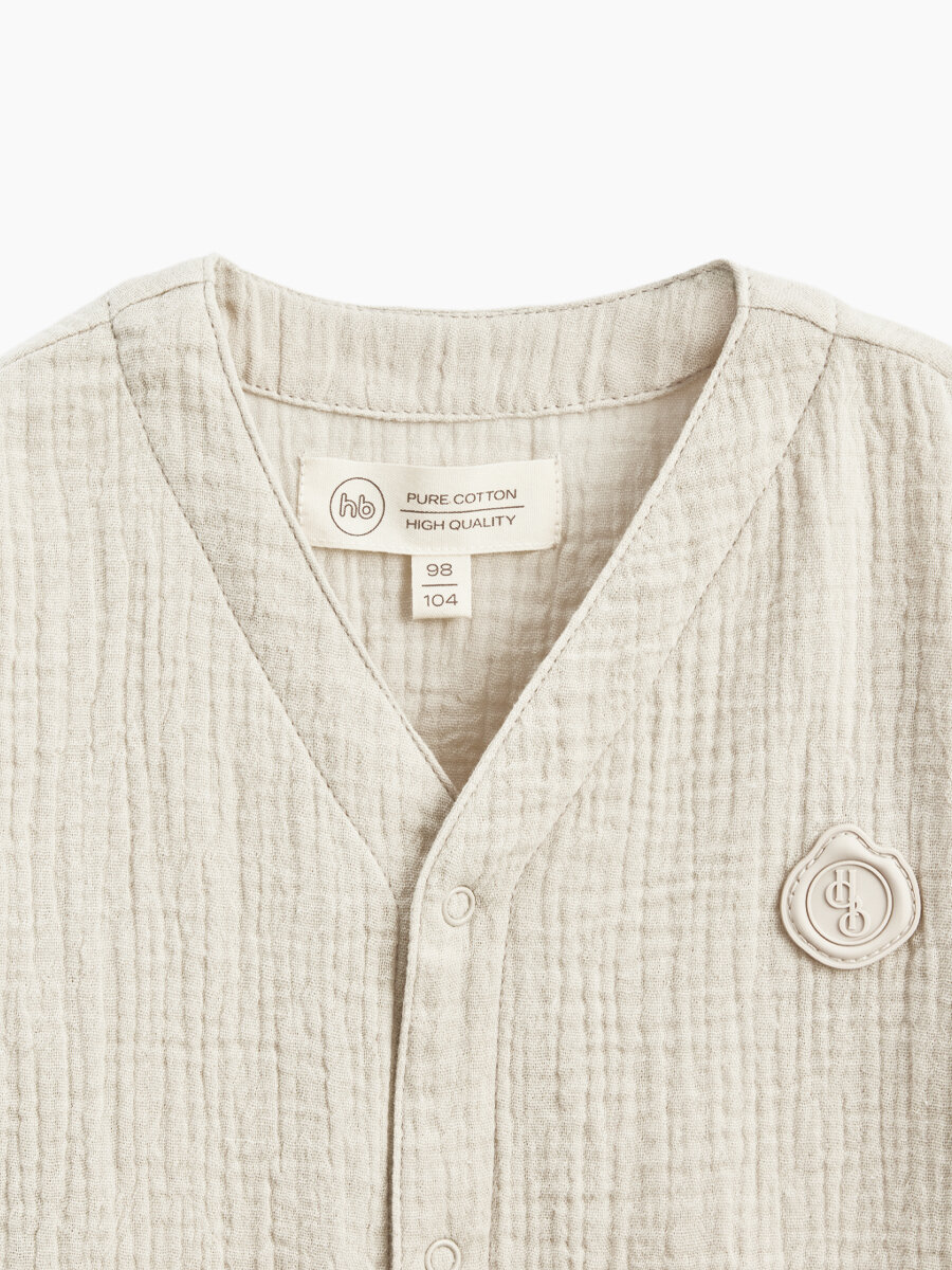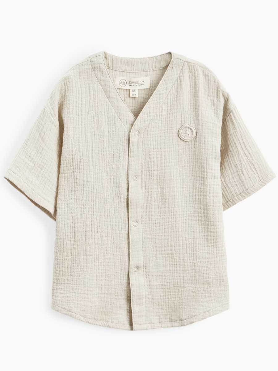 88130, Рубашка детская хлопковая Happy Baby, рубашка для мальчика и для девочки летняя, детская одежда на лето, бежевая, размер 86-92
