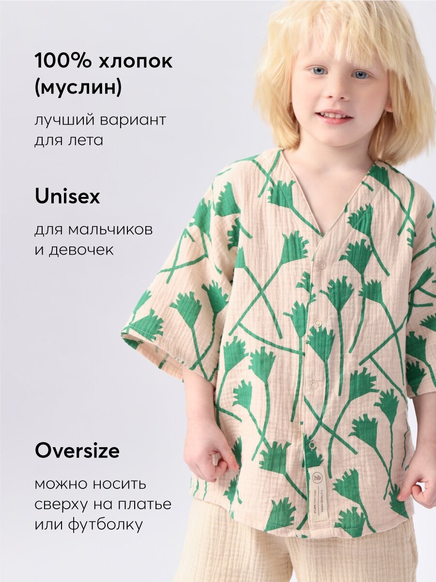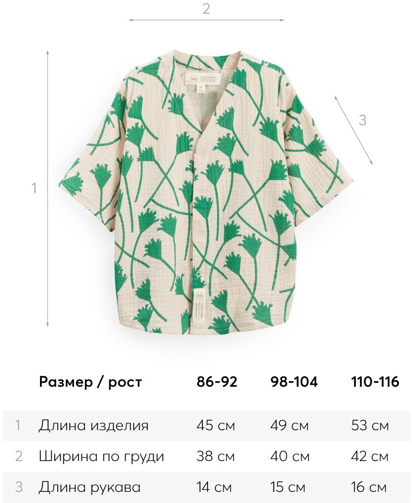 Сохранить88130, Рубашка детская хлопковая Happy Baby, для девочки и для мальчика, на лето, белая с зеленым орнаментом, размер 110-116 интересное: