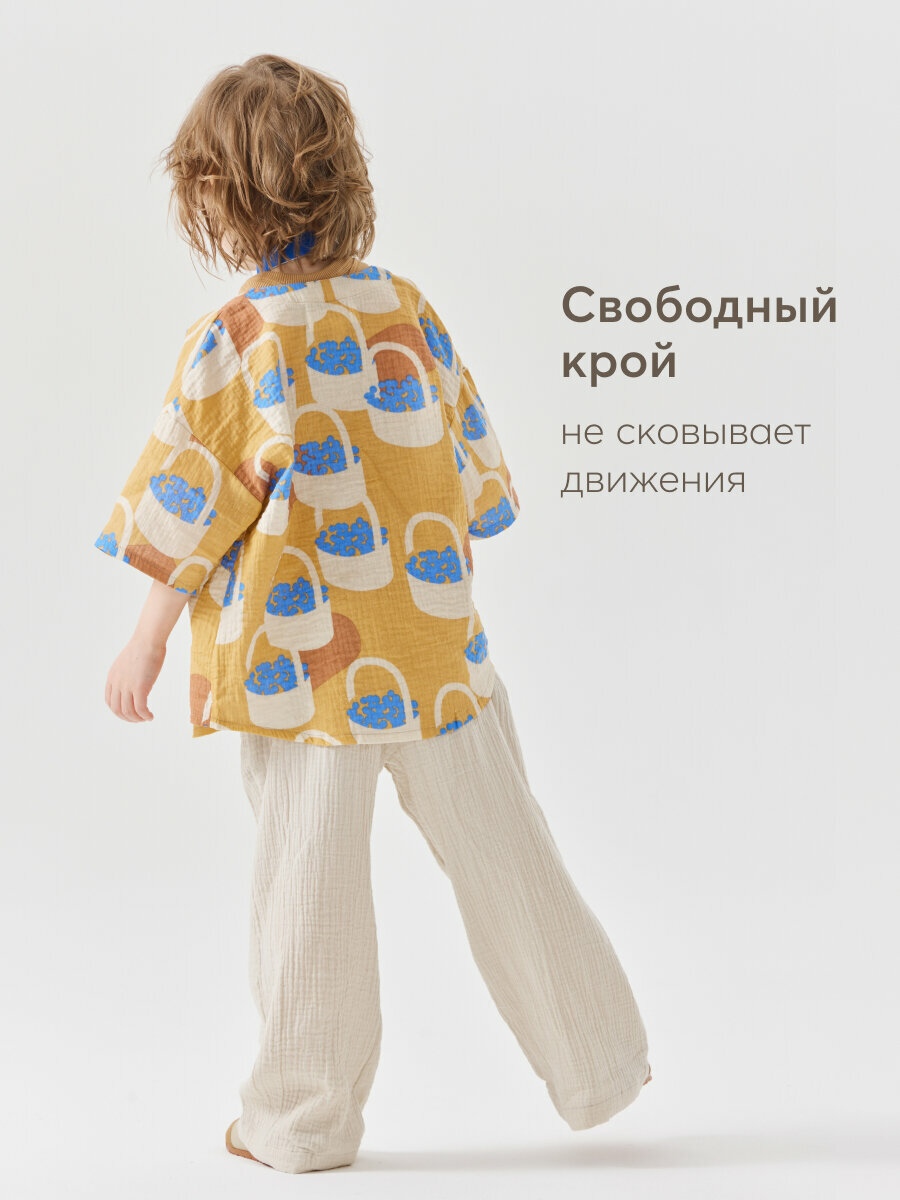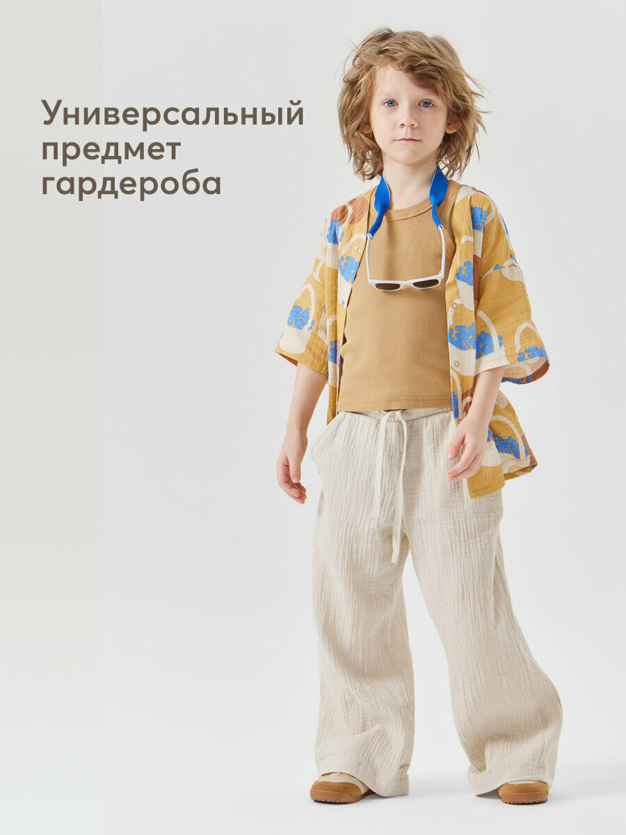 88130, Рубашка детская хлопковая Happy Baby, рубашка для мальчика и для девочки летняя, детская одежда на лето, бежевая, размер 128-134
