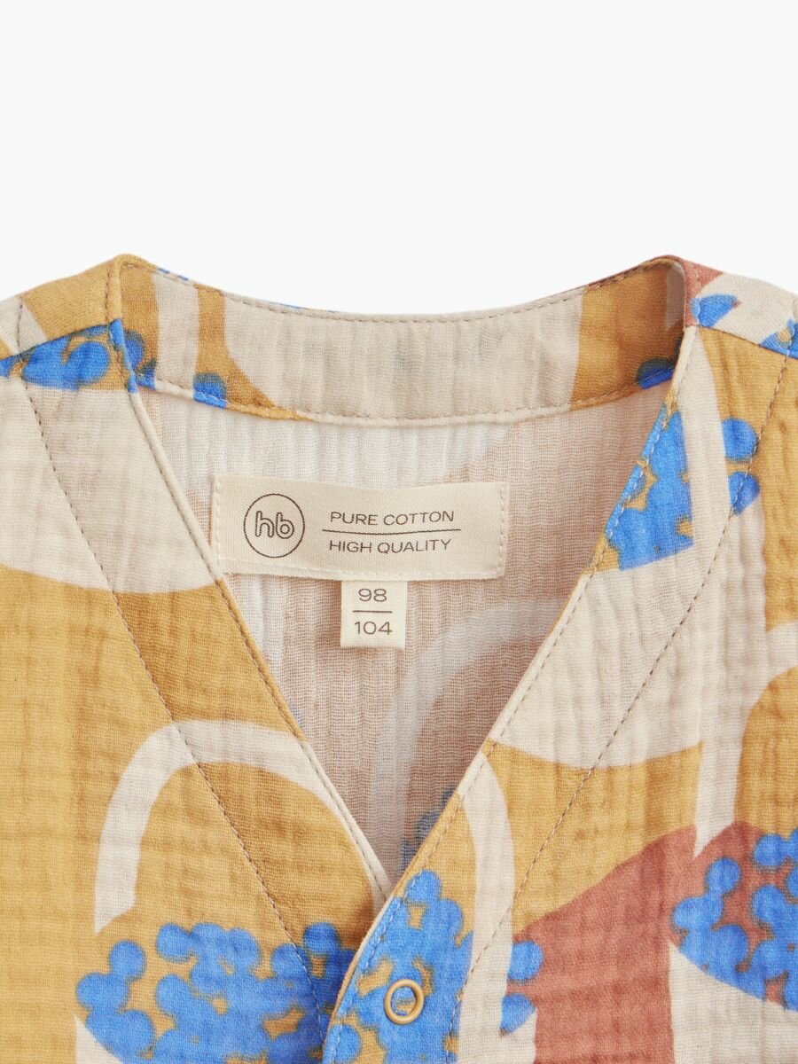 88130, Рубашка детская хлопковая Happy Baby, рубашка для мальчика и для девочки летняя, детская одежда на лето, бежевая, размер 86-92