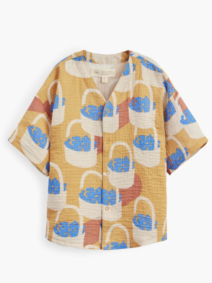 Сохранить88130, Рубашка детская хлопковая Happy Baby, рубашка для мальчика и для девочки летняя, детская одежда на лето, коричневая, размер 122-128 интересное: