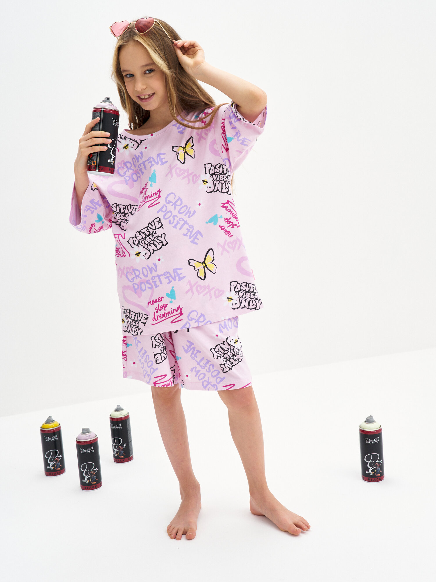Купить Пижама для девочки, KOGANKIDS, 611-314-23, пудровый набивка, 164 / 14 лет