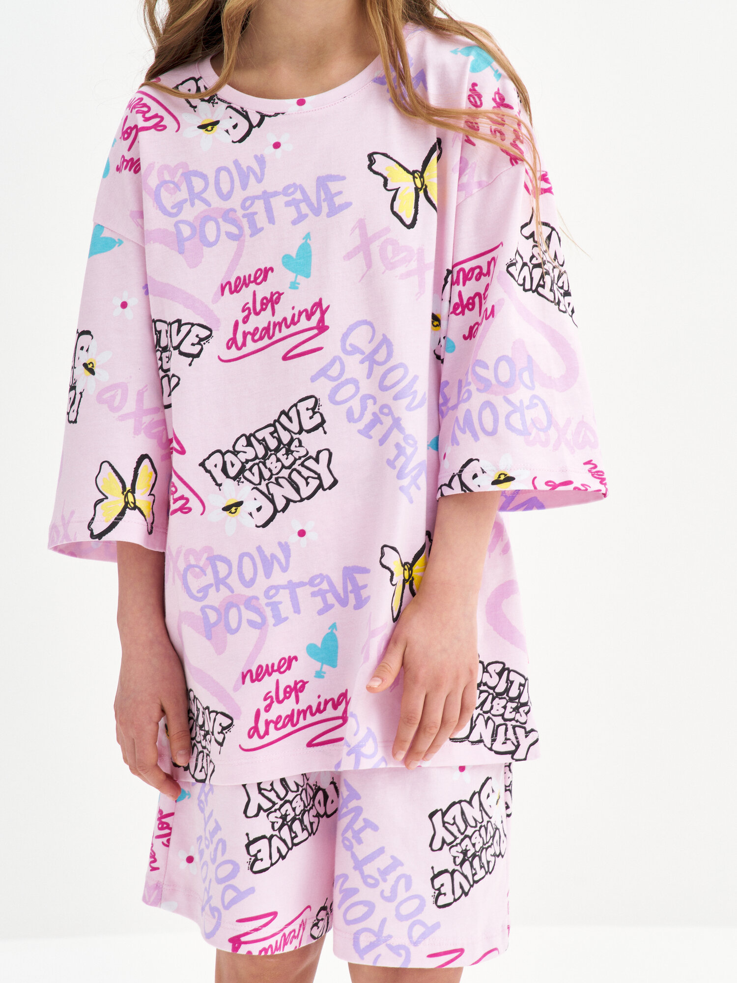 Пижама для девочки, KOGANKIDS, 611-314-23, пудровый набивка, 140 / 10 лет