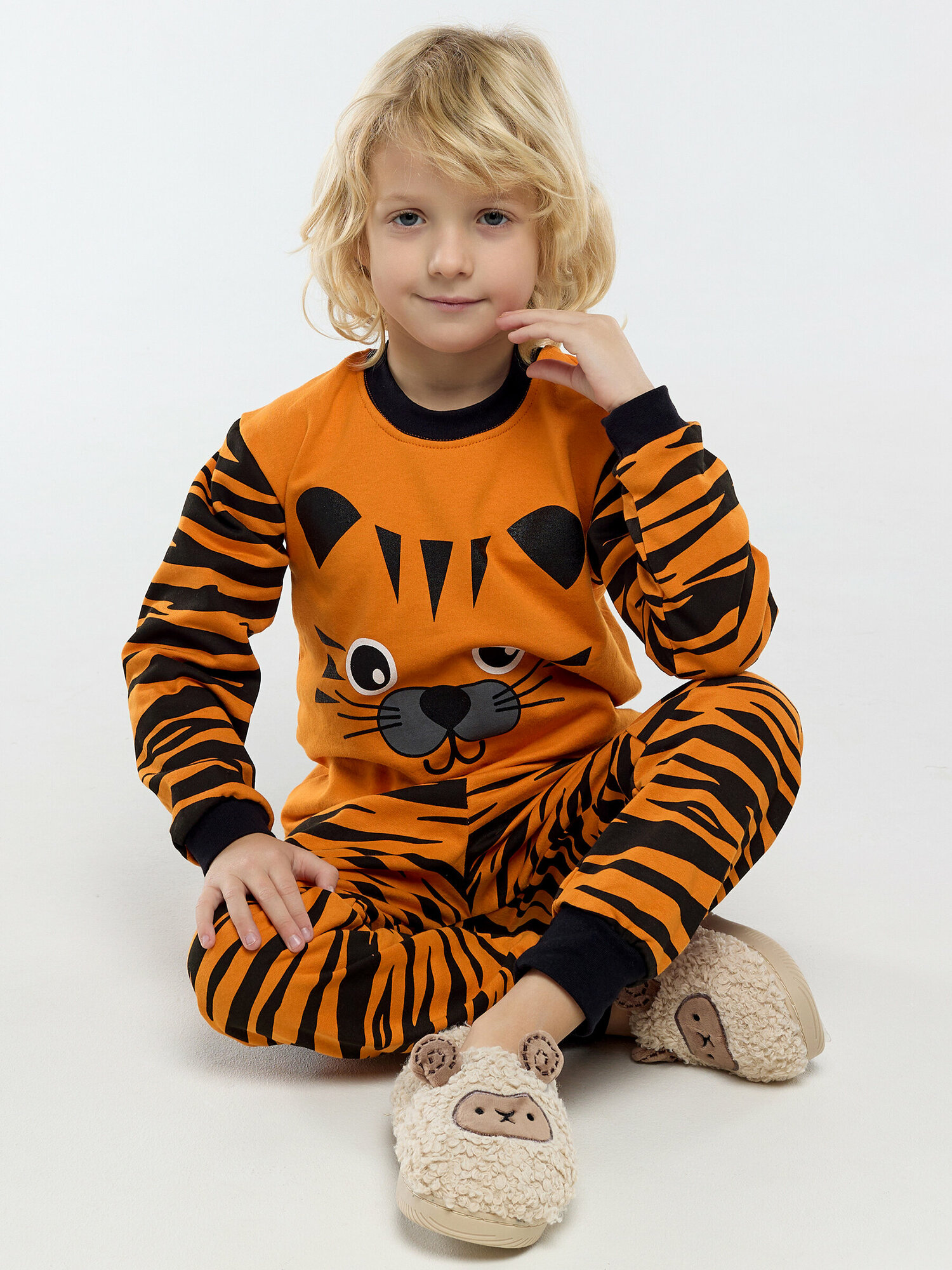 Купить Пижама с начесом, оранжевый тигр, размер 98