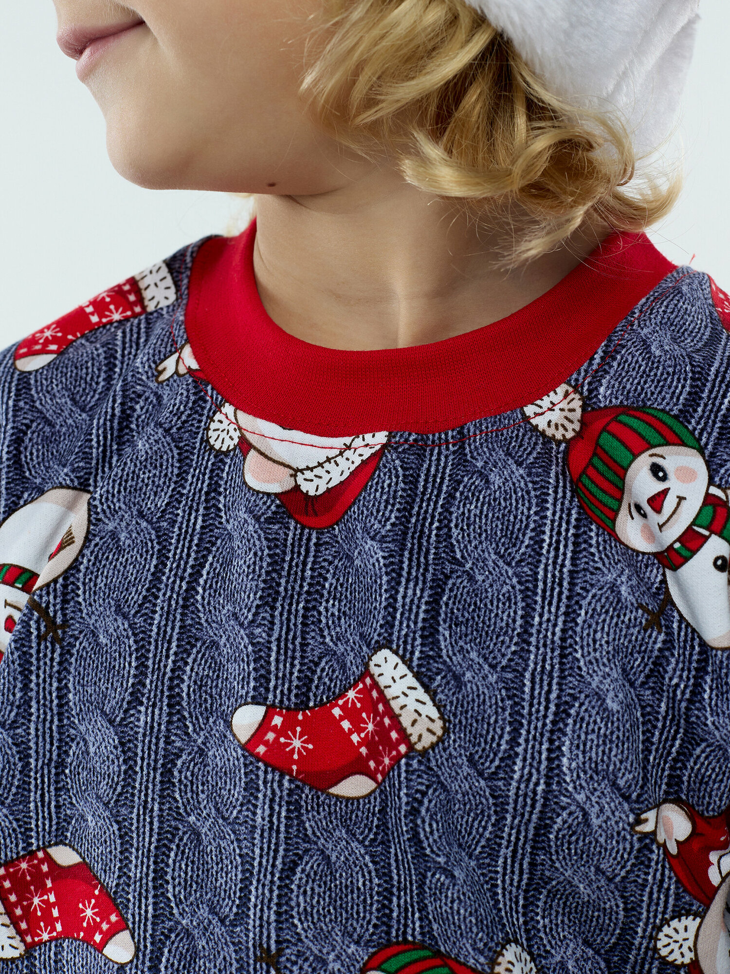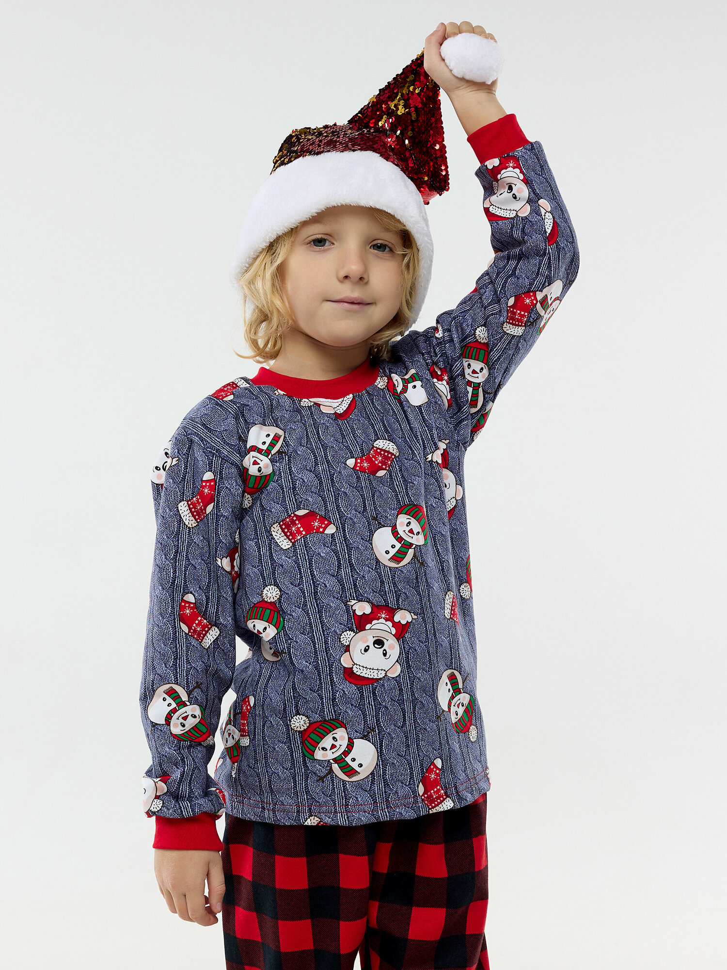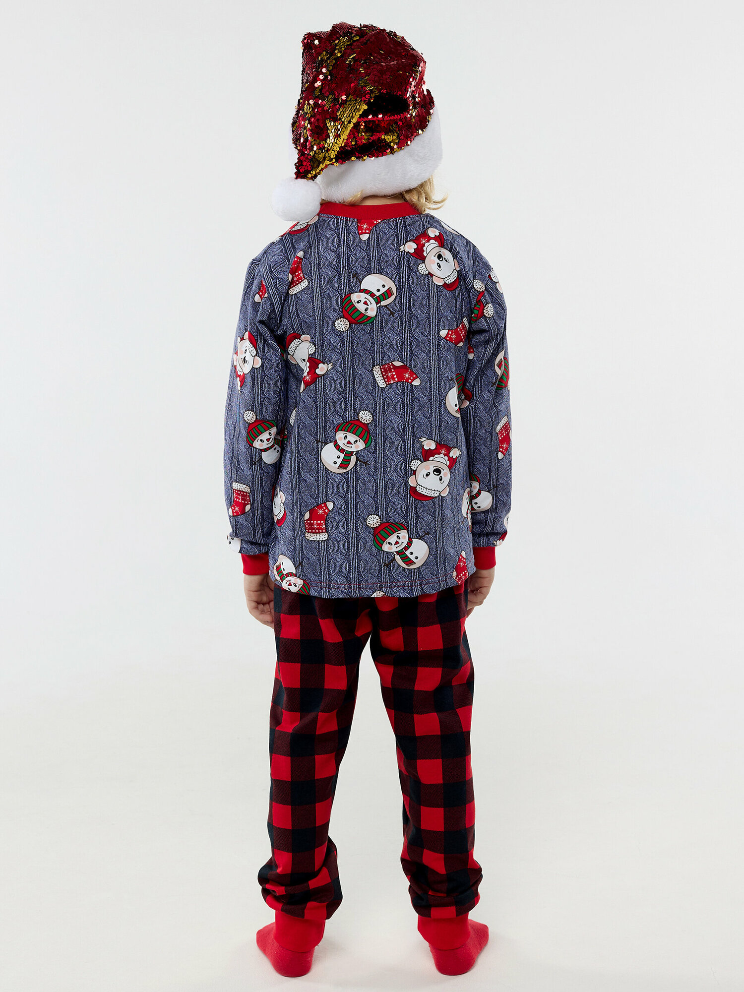 Купить Пижама с начесом, снеговик и штаны в клетку, размер 122