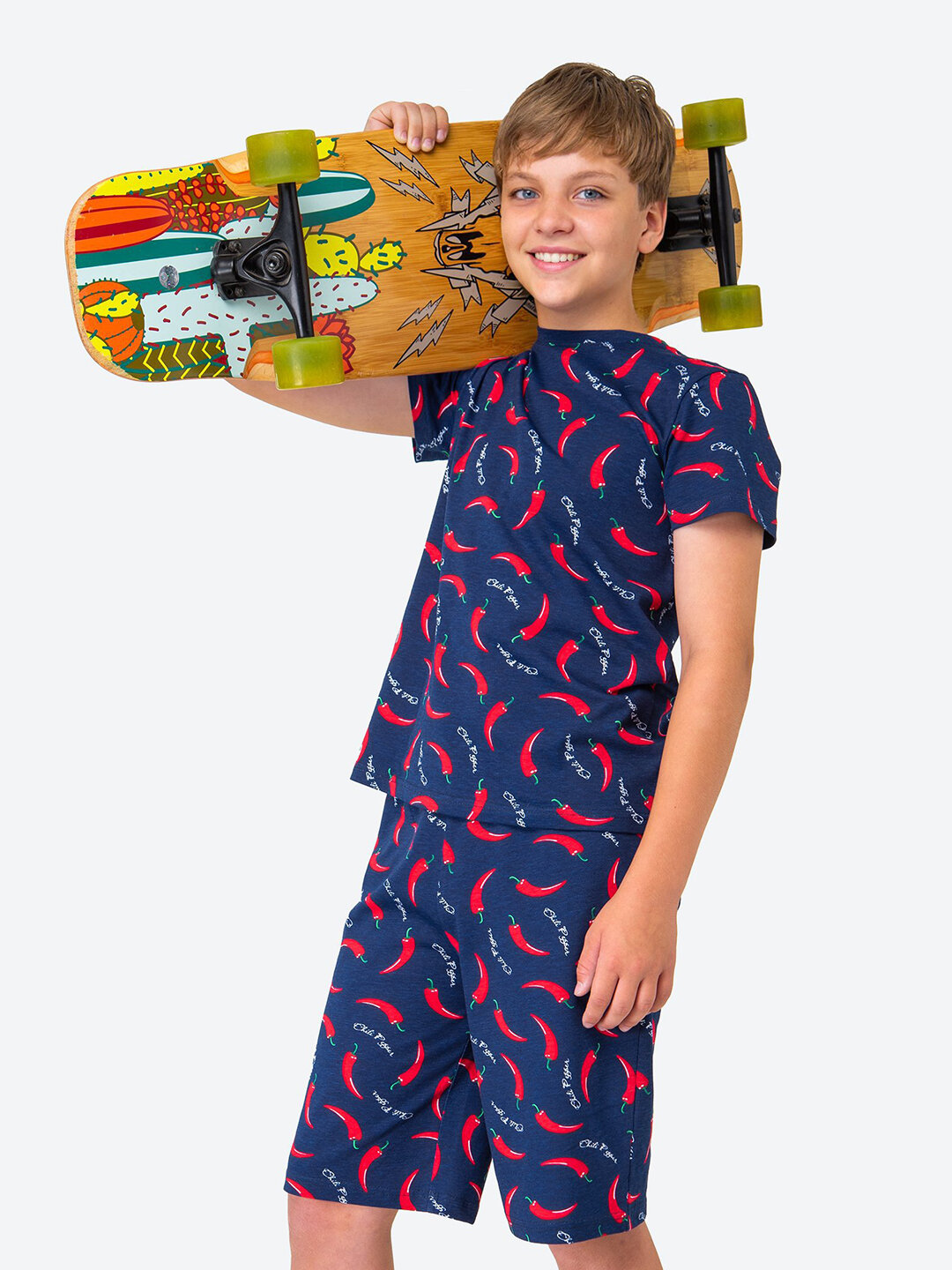 Пижама с шортами детская хлопковая Happyfox HF4872SP крупные.перцы.черный 146