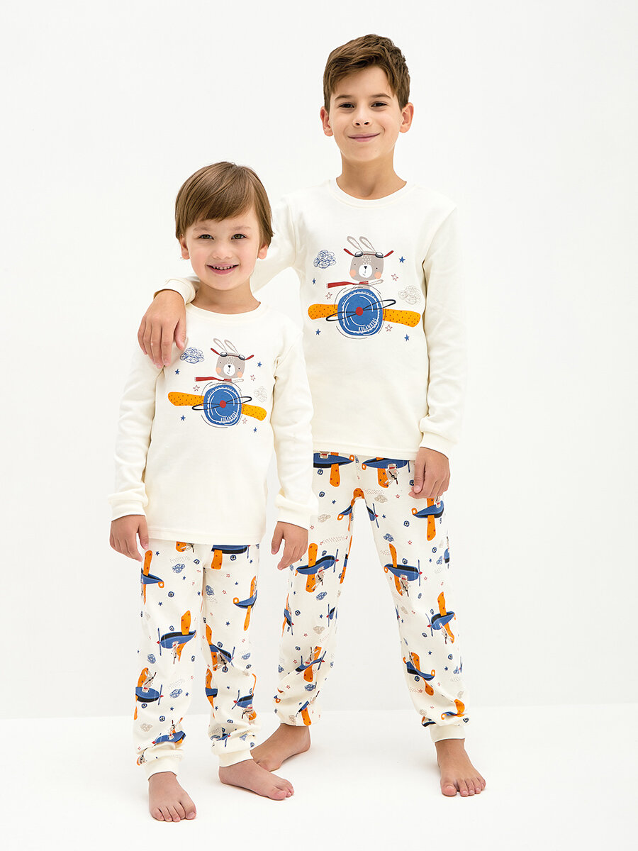 Пижама для мальчика,KOGANKIDS,молочный набивка самолётики, 110 / 5 лет