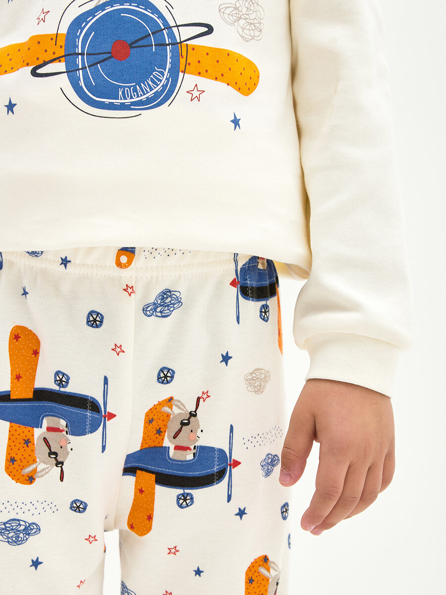 Купить Пижама для мальчика,KOGANKIDS,молочный набивка самолётики, 122 / 7 лет