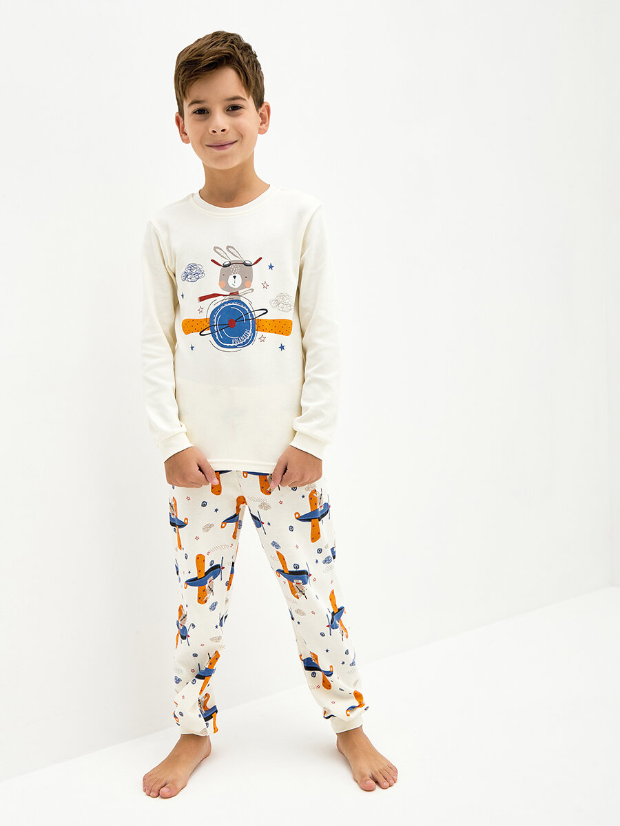 Пижама для мальчика,KOGANKIDS,молочный набивка самолётики, 116 / 6 лет