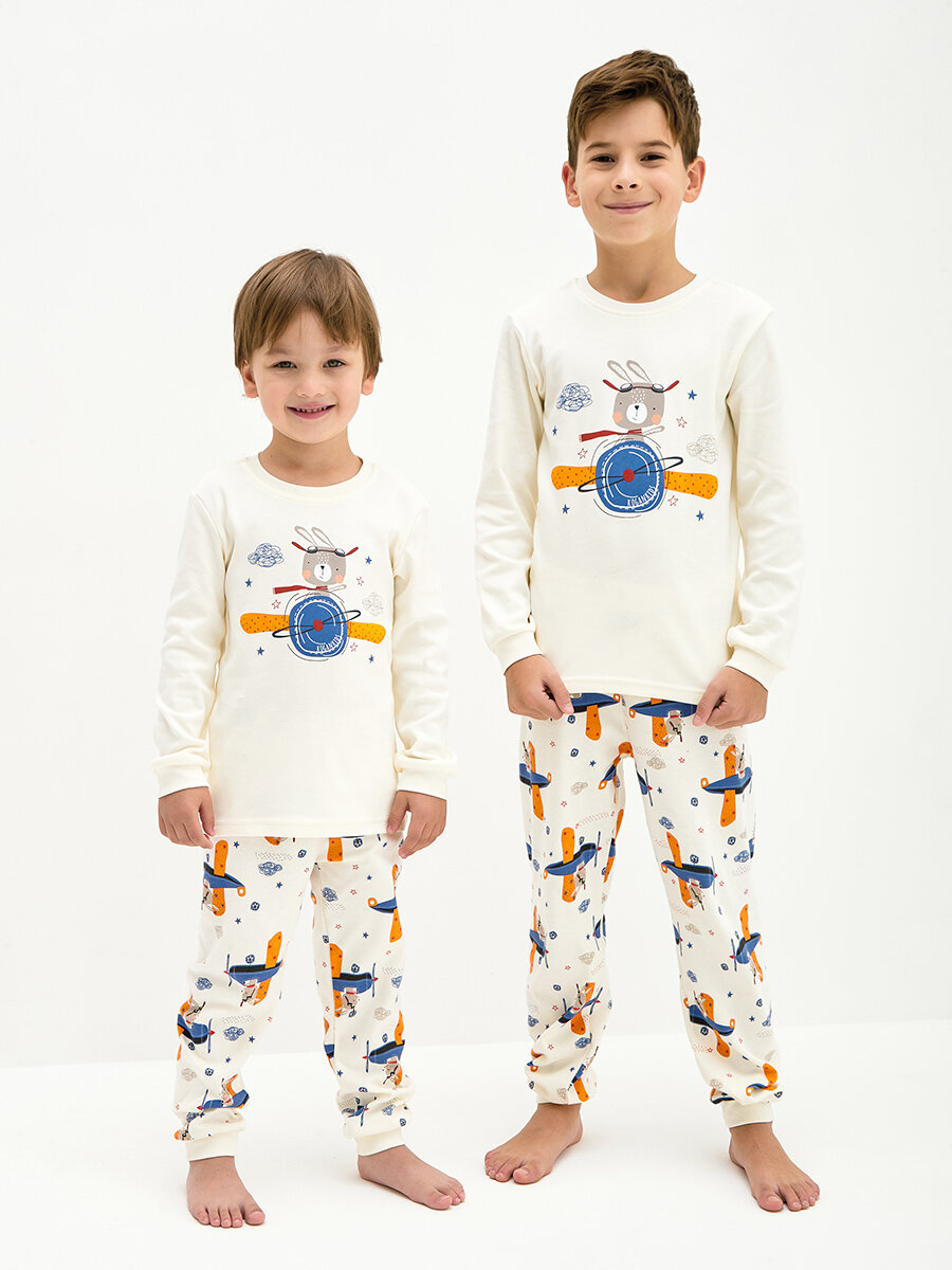 Пижама для мальчика,KOGANKIDS,молочный набивка самолётики, 116 / 6 лет