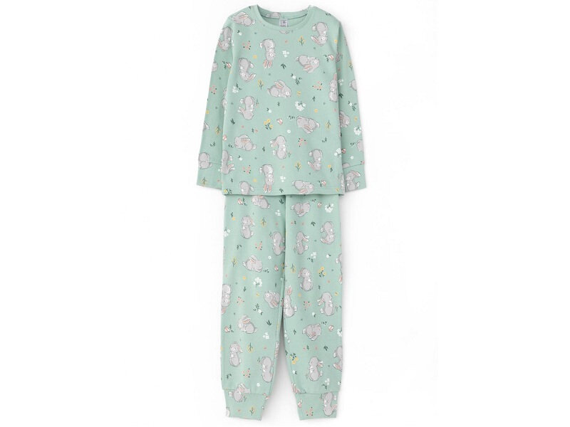 Комплект пижамы для девочки, Crockid К 1552/листья папоротника,зайки пижама дет р 64/122